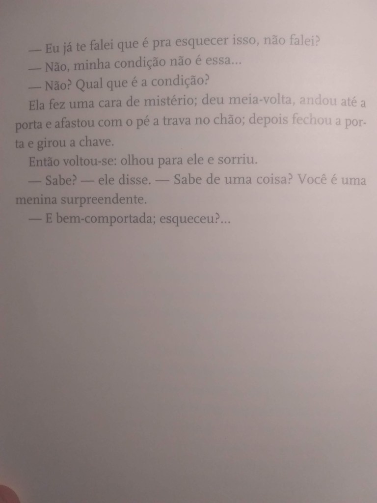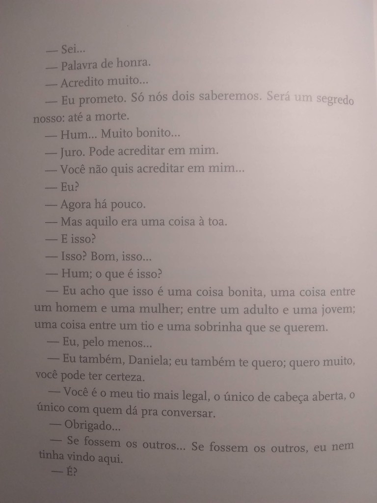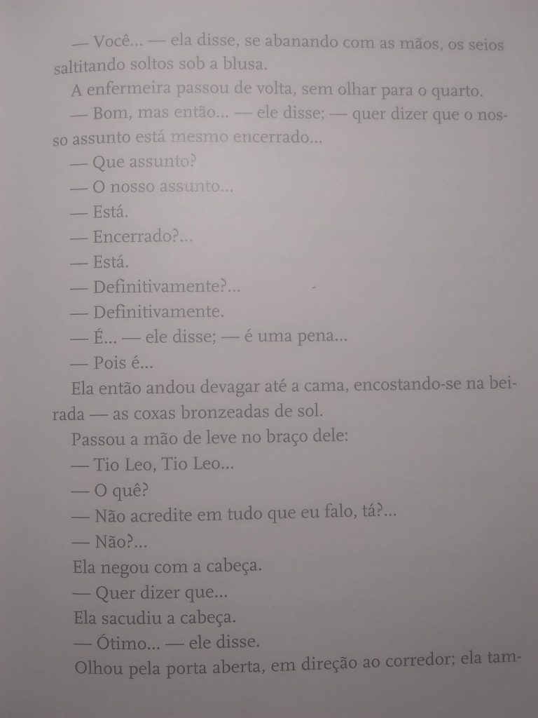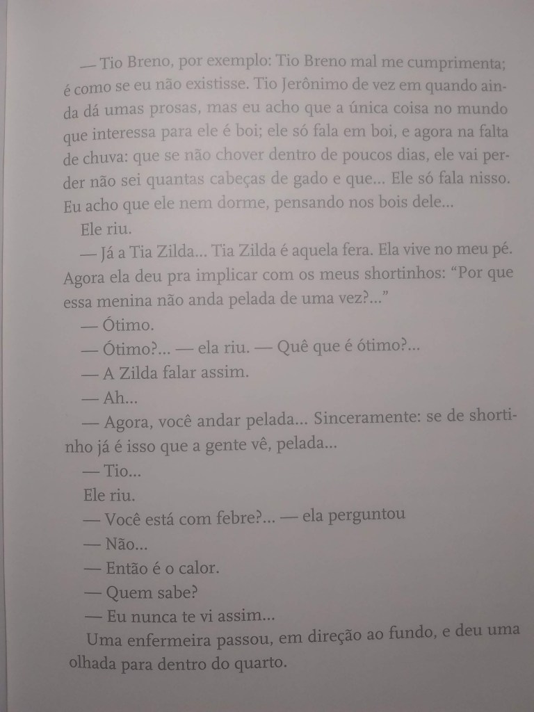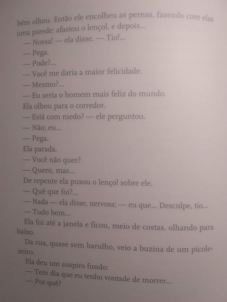 Repare como, tanto no conto “Luxo” quanto “Calor”, as duas histórias vão se entrelaçando sutilmente, até desembocar no desfecho implacável. “Calor” aborda um tema difícil: o relacionamento entre uma garota adolescente e seu tio, bem mais velho. A sedução de um quarentão em quarentena é ambígua – estará ele seduzindo ou sendo seduzido? Quem detém o poder, o velho ou a garota? Quem domina esta situação? Estamos vendo um abuso ou um jogo? Temos em um nível a sedução do tiozão e no segundo nível a criação do perfil psicológico da garota: afinal, quem está seduzindo quem, a garota, o tiozão – ou o texto, que nos faz bisbilhotarmos essa cena pelo buraco da fechadura?