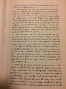 Um monólogo, um solilóquio ou um fluxo de consciência. Na primeira pessoa. No tempo presente.