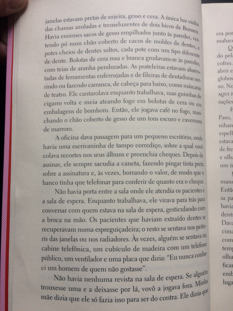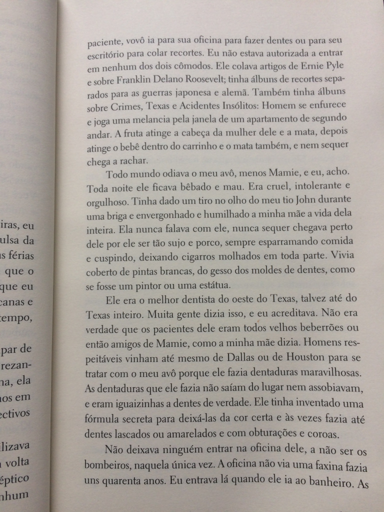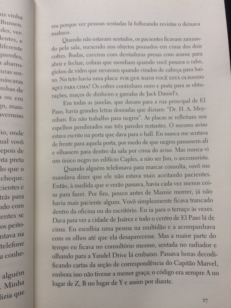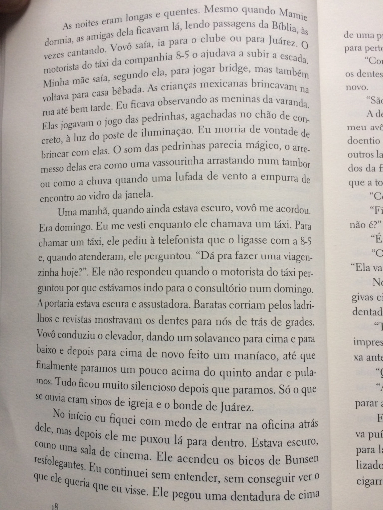 Como esta: “o carro elétrico era igual a qualquer outro carro, salvo pelo fato de ser alto e curto, como um carro de desenho animado quando bate numa parede. Um carro de cabelo em pé.” Ou “uma vez ele me disse que me amava porque eu era como a San Pablo Avenue”. Ou “ele era como o depósito de lixo de Berkeley”. Ou “caminhões de lixo trovejam pelas estradas de terra, levantando vagalhões de poeira. Dinossauros cinza”. Ou “grous saem voando com um barulho de cartas sendo embaralhadas”.