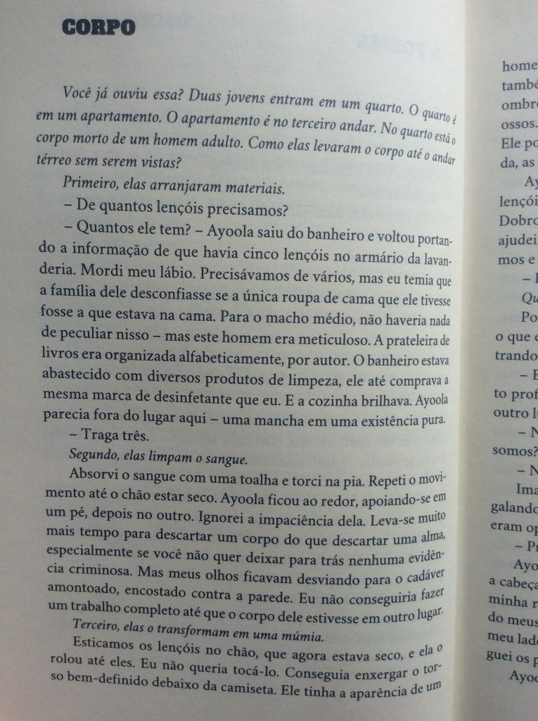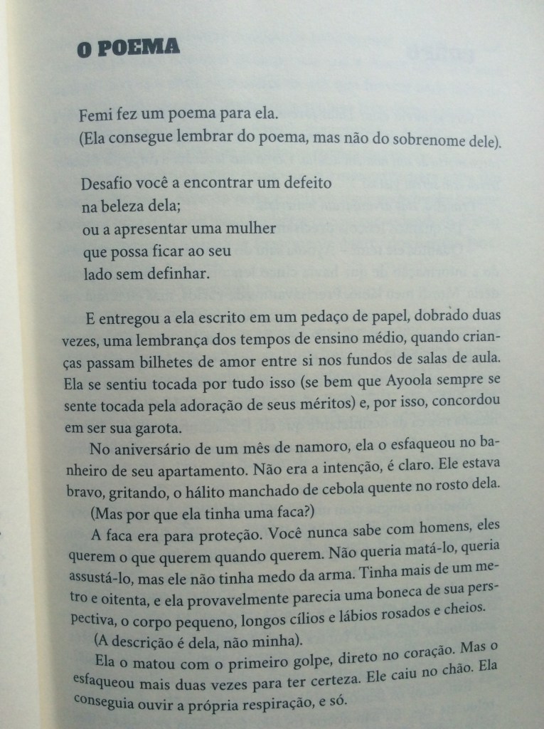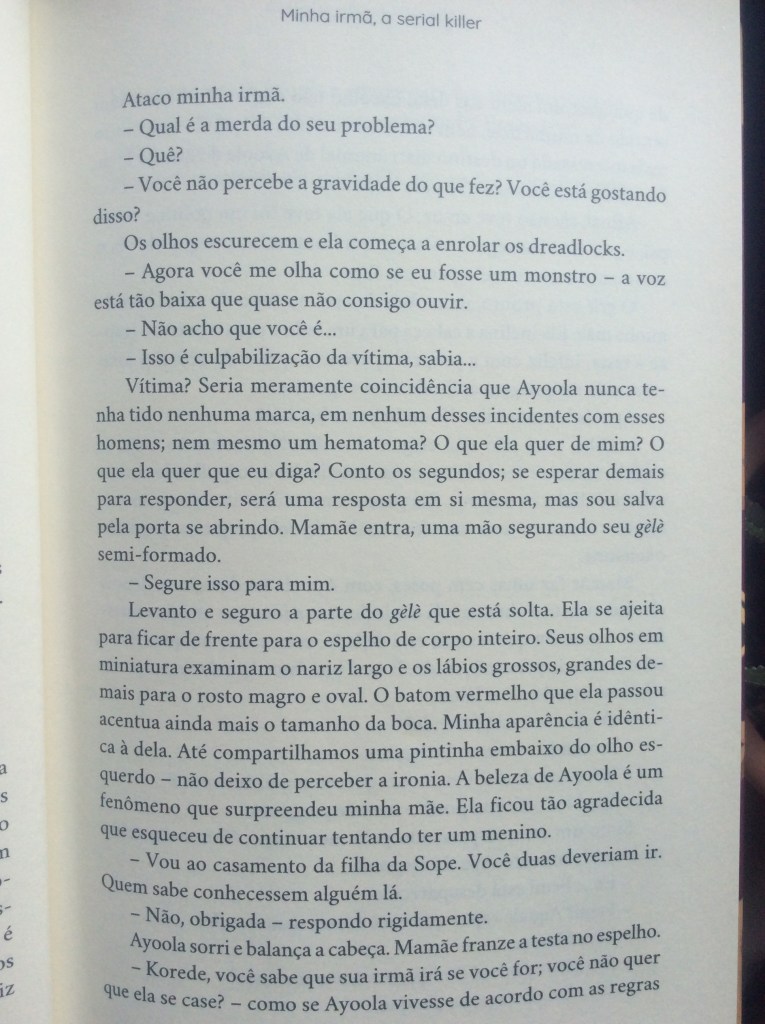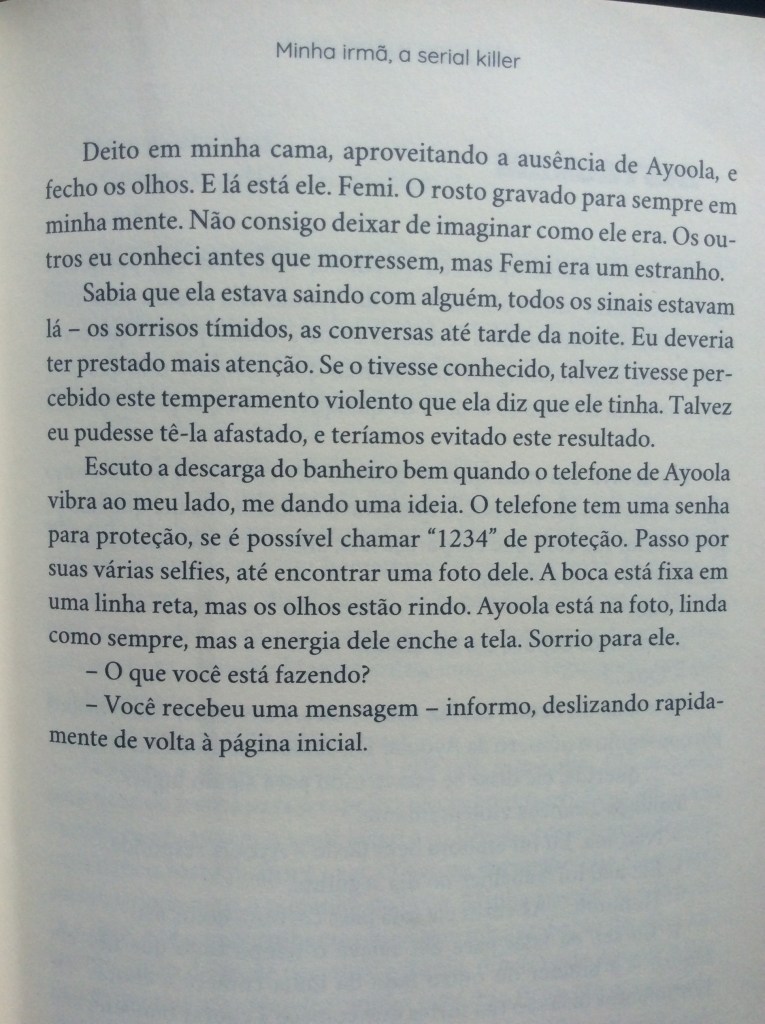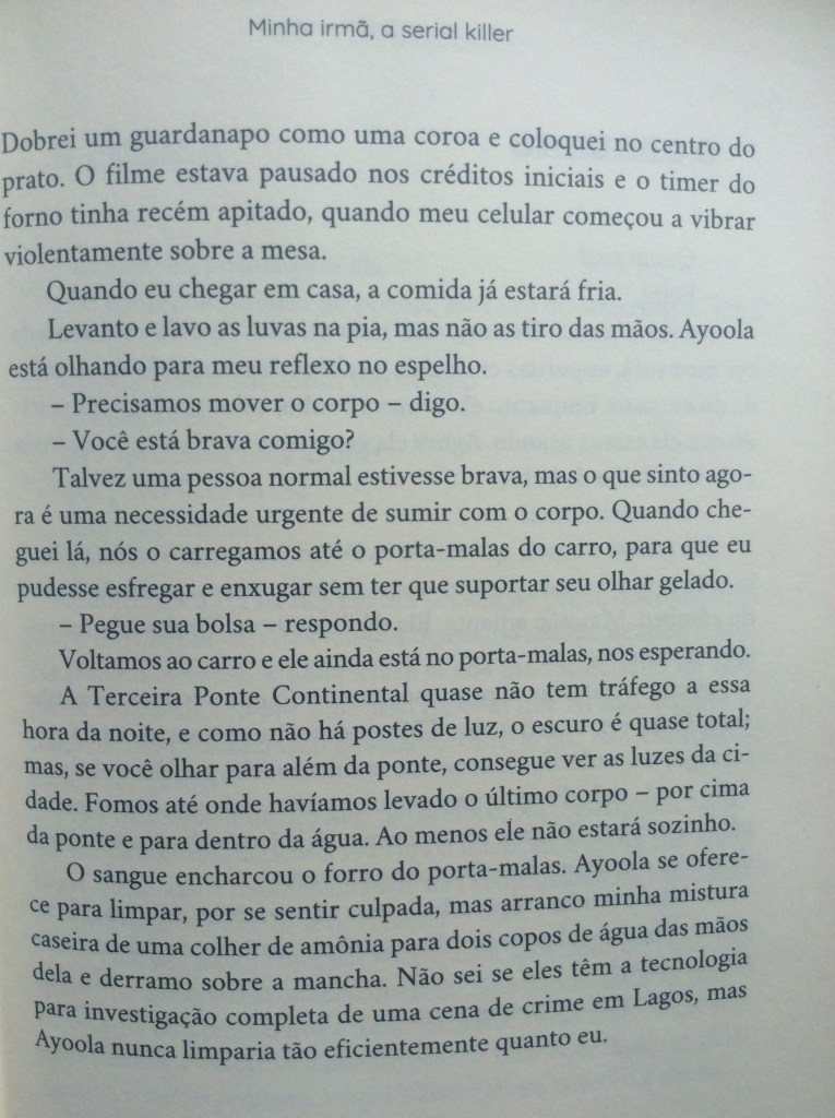 Oynkan Braithwaite é uma jovem (32) escritora nigeriana, autora de dois livros, The Driver (contos) e o romance Minha Irmã, a Serial Killer (Kapulana), semifinalista do Booker Prize em 2019. De escrita ágil, direta e sagaz, esta dark comedy narra as desventuras de Korede, a narradora, que tenta o tempo todo passar um pano nas estrepolias da irmã psicopata Ayoola, que tem o péssimo hábito de assassinar seus namorados. Korede é uma médica feinha empática, sensível e com baixa auto-estima, e Ayoola uma deusa da beleza sedutora, fria e filha da puta, que sempre ganha todas as graças da família. O livro é esperto em seu mix de crítica social – a Nigéria é um dos países mais machistas do mundo – e de mergulho psicológico: ao mesmo tempo em que Korede vê motivos nos crimes da irmã, também se vê manipulada por ela, e não consegue deixar de ajudá-la – até se tornar sua cúmplice nos crimes. É daqueles livros que você lê em duas horas, mas reúne tal complexidade de sentimentos e reflexões que fica ressoando muito tempo depois da leitura.