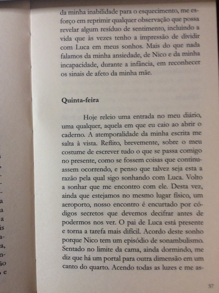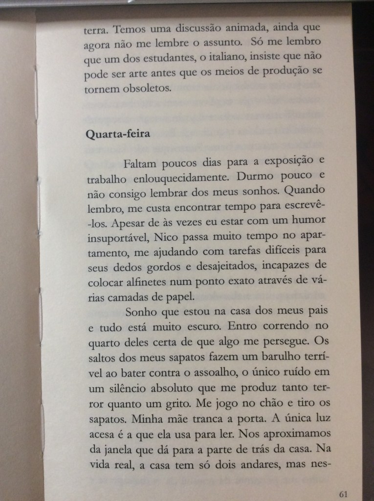 Da terça até o dia da próxima aula você poderá dar um tapa tanto nos sonhos quanto nas entradas do diário para tecer relações entre eles. Por exemplo: perceba como Carolina vai apresentando e retomando os temas do atual e do ex namorado ao longo de todo o texto.