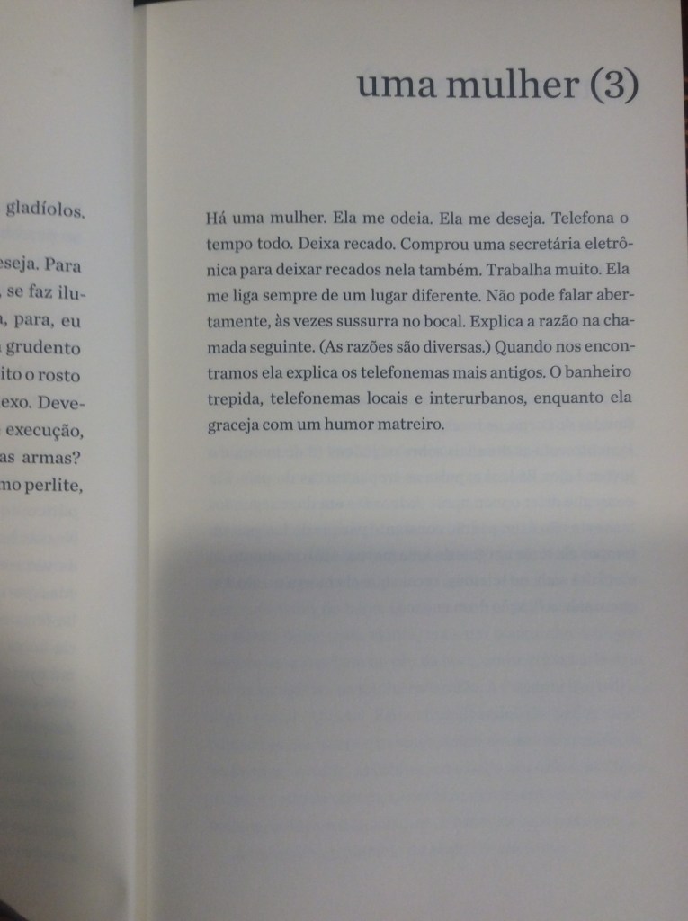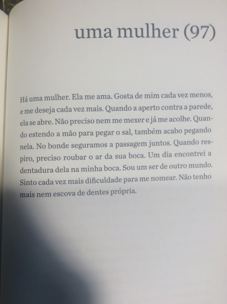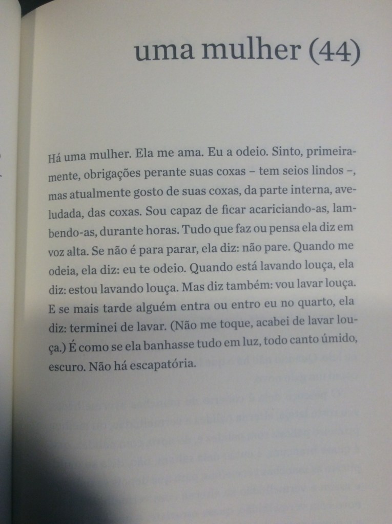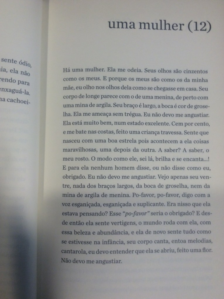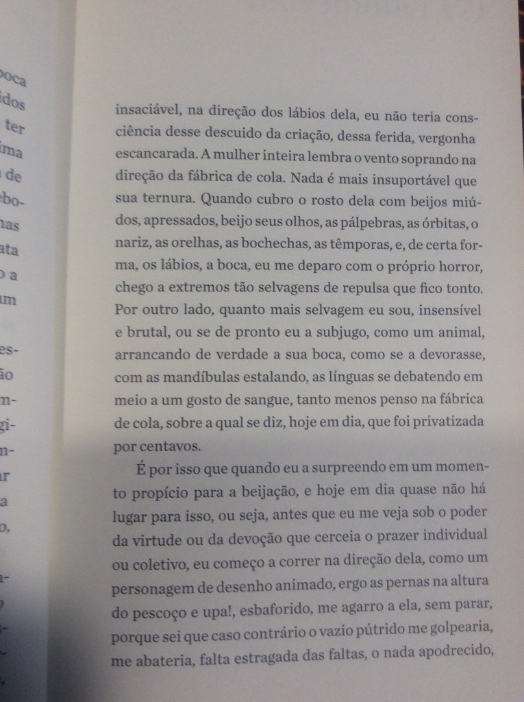 O mérito do livro reside, sobretudo, na sensibilidade do narrador ao descrever esses pequenos relatos, que vão desde rápidas tardes de sexo a reencontros surpreendentes, como no fragmento, em que ele diz, certeiro: ‘enquanto escovávamos os dentes passaram inesperadamente vinte e oito anos’. O essencial das relações não estaria, portanto, na continuidade dos fatos, mas em momentos de epifania em que o amor e/ou o ódio emergem por uma razão qualquer.