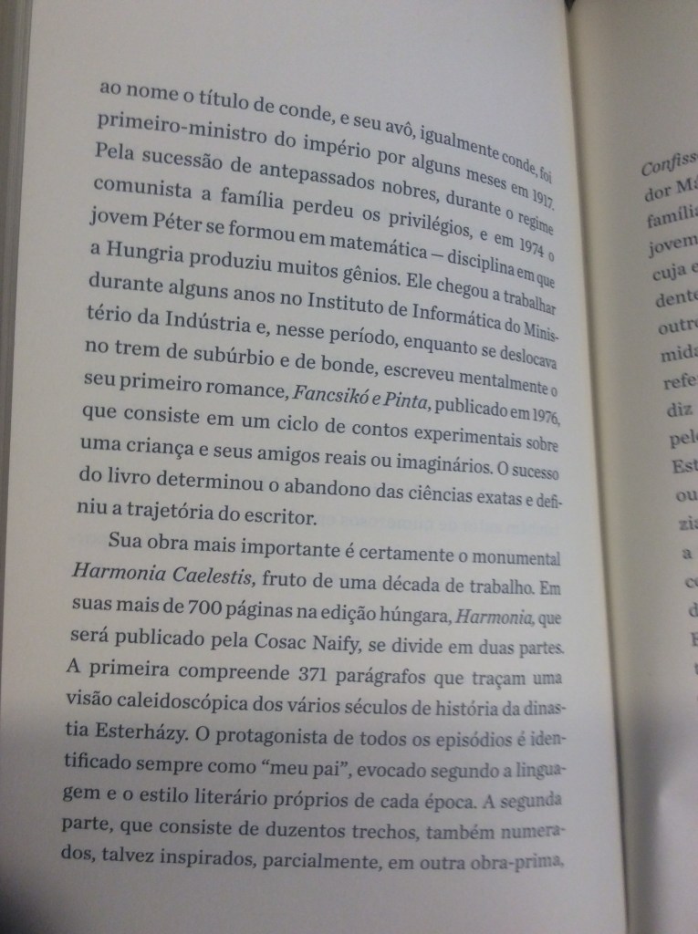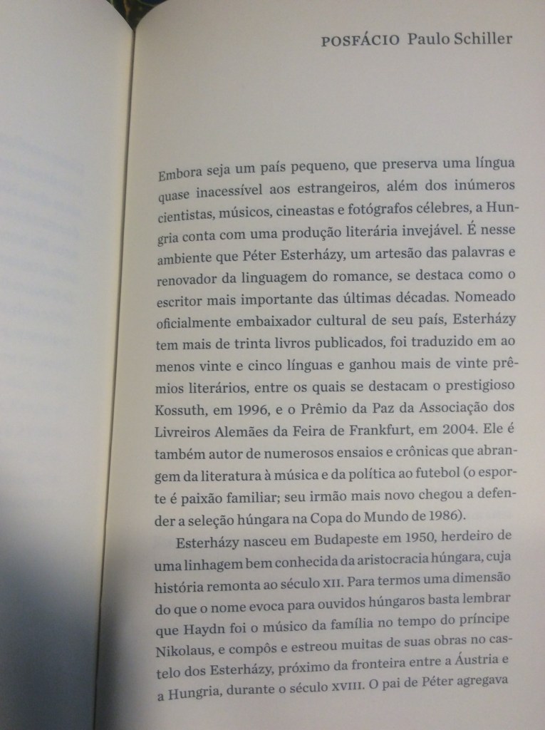 Na corrente de grande parte da literatura contemporânea, Esterházy dilui as fronteiras entre prosa e poesia, romance e conto, construindo um livro que, por seu caráter caleidoscópico, pode ser lido em diversas direções, de forma aleatória. Nesse sentido, não chega a acrescentar grande novidade ao leitor habituado às transgressões de gênero realizadas no século XX.