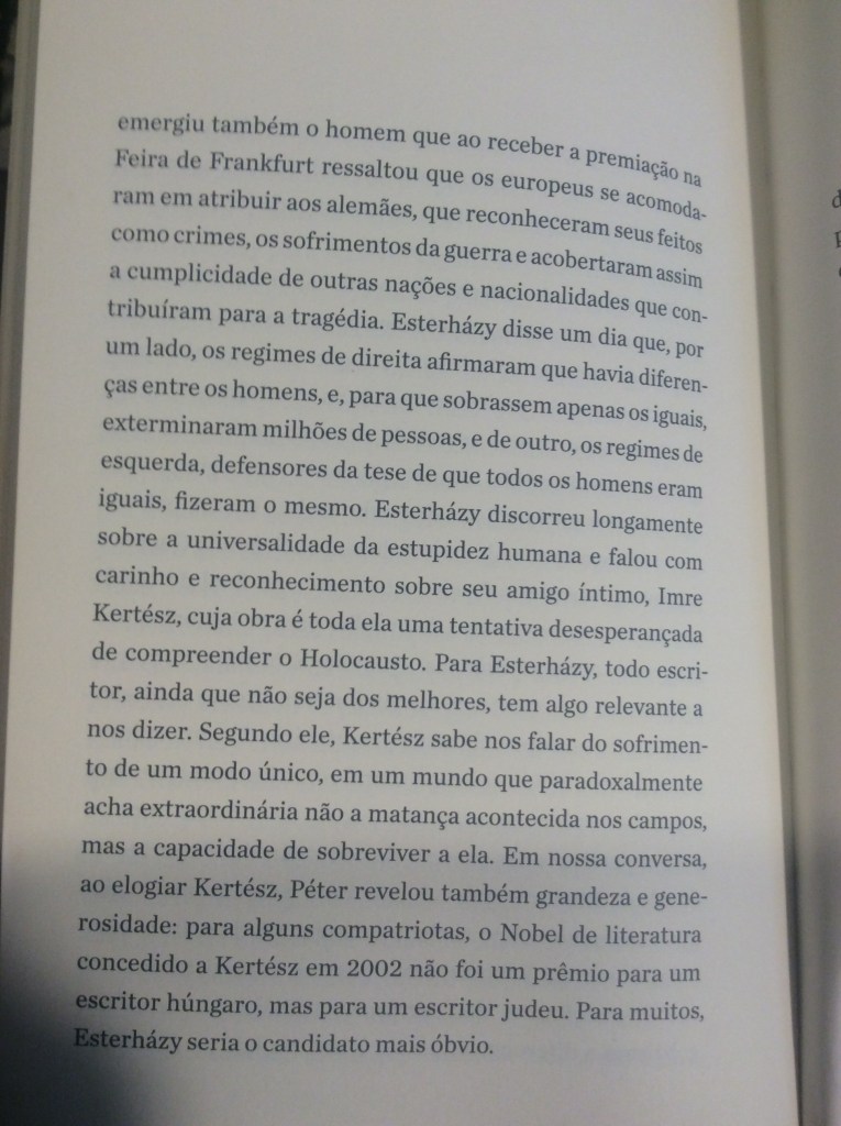 Faça como Esterházy: não se leve a sério nem leve a sério tais amores ou desamores.