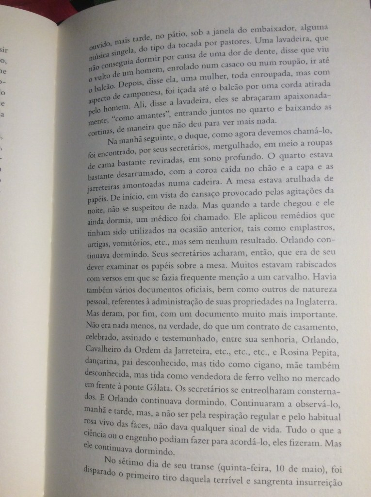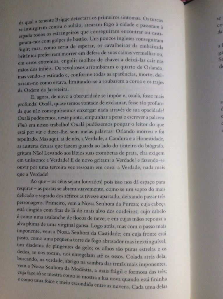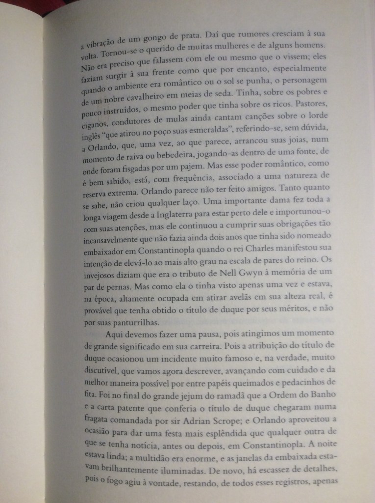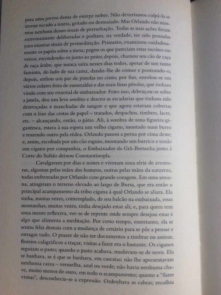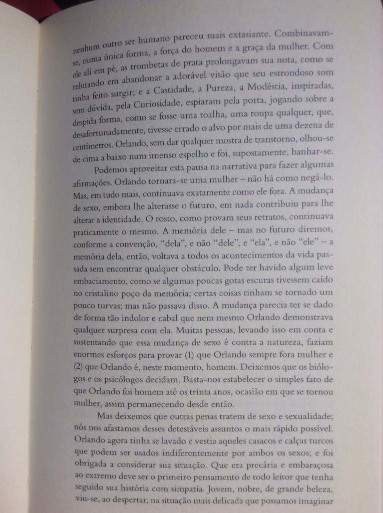A inglesa Virginia Woolf é uma das grandes escritoras do século 20 principalmente pela inovação na linguagem (em especial o monólogo interior e o fluxo de consciência, como em As Horas) e pelo ensaísmo arrojado (como no fundamental Um Teto Só Seu, marco do feminismo). Mas é no gênero biográfico que trouxe um de seus livros mais inquietantes: Orlando (Autêntica). Na linguagem, algo empolada e, pra quem tiver ouvidos pra ouvir, obviamente farsesca e irônica (o pai de Virginia era um notório biógrafo de reis e rainhas, gênero literário que ela está por motivos pessoais imitando/parodiando/zoando). Viriginia Woolf trata como real um personagem que nunca existiu (inclusive entrelaçando sua suposta vida a fatos históricos). E na criação pioneira de um personagem não-binário: o aristocrata Orlando, que um belo dia acorda mulher, depois de décadas como homem, e vive mais algumas décadas assim – ou seja, um personagem de realismo mágico, que atravessa séculos e gêneros numa boa (atravessa também classes sociais, uma vez que prefere transar com marujos e criadas em vez de condes e duquesas). Nunca houve um personagem como Orlando (talvez só Oxumaré ou Dionisio).