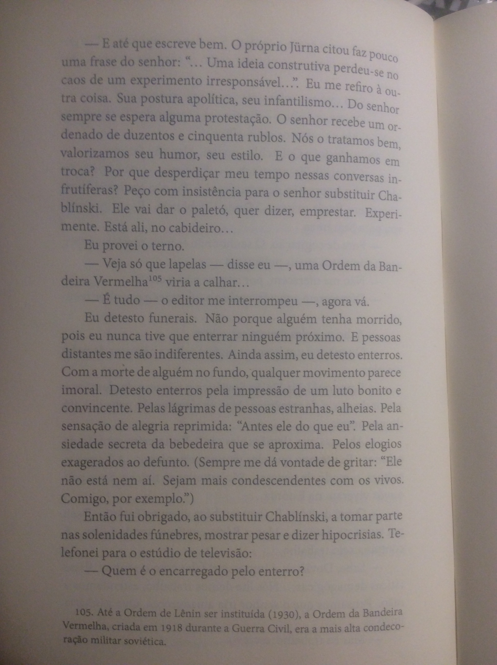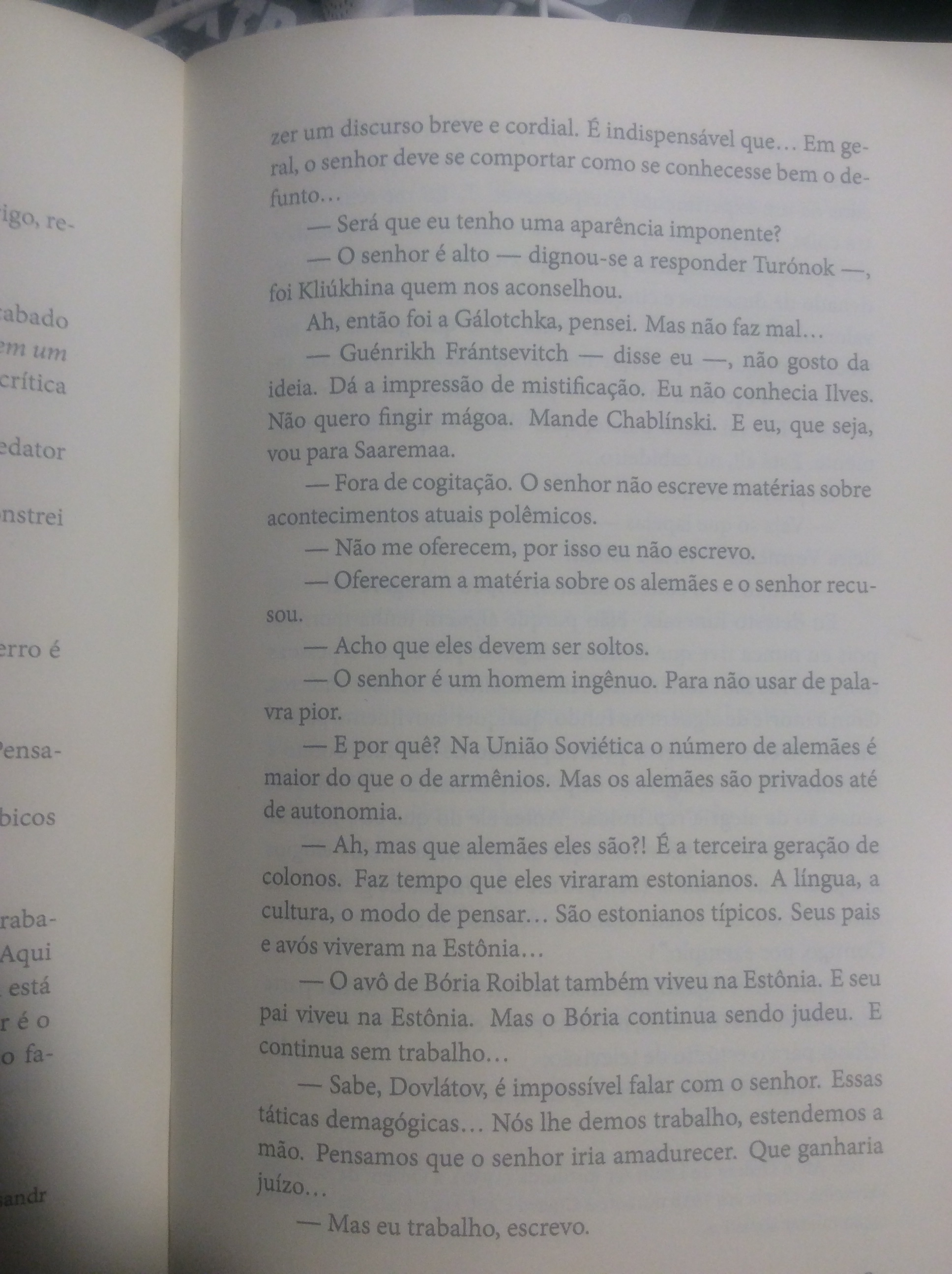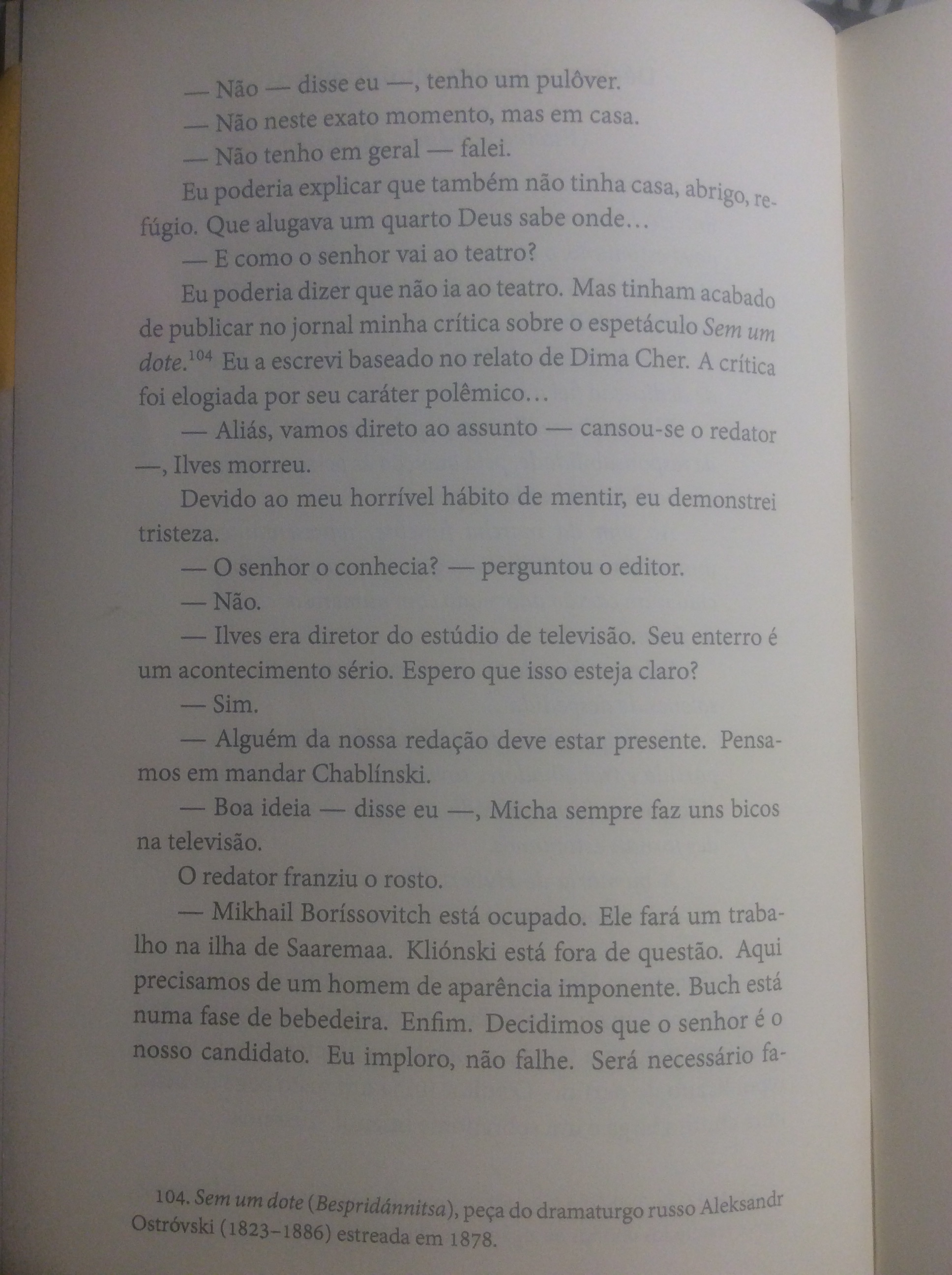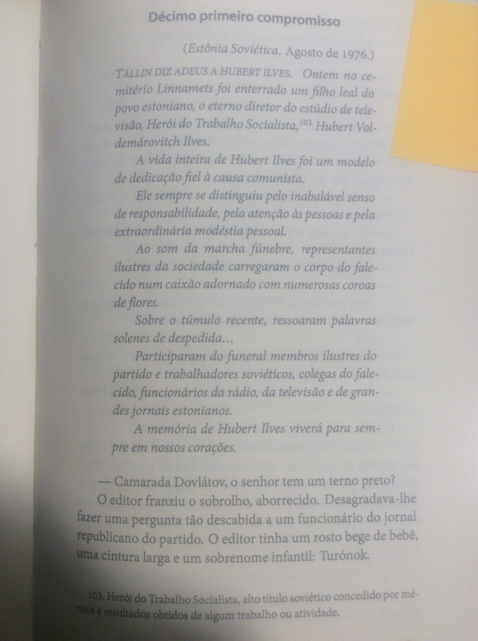 No Brasil, Serguei Dovlátov era um dos segredos mais bem-guardados da literatura russa até a editora Kalinka começar a publicar seus livros, um após o outro. O conto aí embaixo é do livro O Compromisso – na verdade não é exatamente um conto, se trata de um capítulo do romance memorialista de Dovlátov sobre os dois anos que passou na redação do jornal Estônia Soviética, de Tállin, em 1976. Durante o período Brejnev, Orwell, que já era cartilha russa desde Stálin, virou o Meia-Hora: mentir nas notícias era pinto. Então cada capítulo de O Compromisso propõe narrar os bastidores da notícia – algo às vezes totalmente diferente do que aconteceu. Dovlátov tem grande senso de humor, uma prosa afiada como Hemingway (que ele amava) e alguns truques: suas sentenças são rápidas e curtas, piscam o olho pro leitor esperto, e nenhum período é seguido por outro começando com a mesma letra – regra meio absurda que se tornou sinônimo de vivacidade. Em 2018 ganhou uma biopic, que trata do período surreal em que ele viveu na Rússia, tomando uma garrafa de vodca por dia, no mínimo, traficando calças jeans, inventando notícias falsas para os burocratas e tentando publicar seus livros. Como sempre era censurado, emigrou para NY em 1979, e anos depois o gigante gentil (media 2 metros de altura) virava o escritor russo mais amado da América (e olha que Brodsky, seu melhor amigo, tinha ganho o Nobel). Morreu no meio da rua, de ataque cardíaco, aos 49.