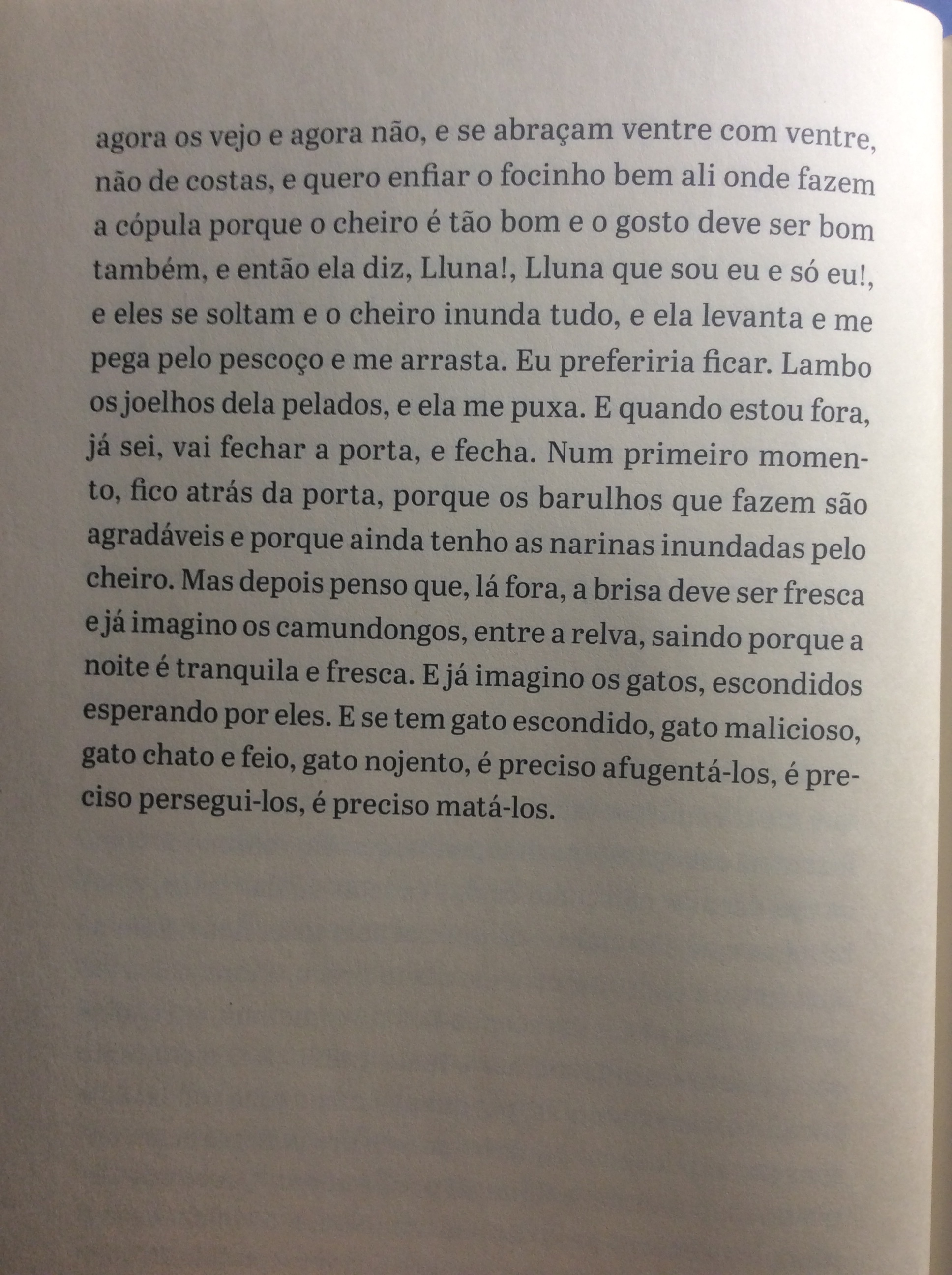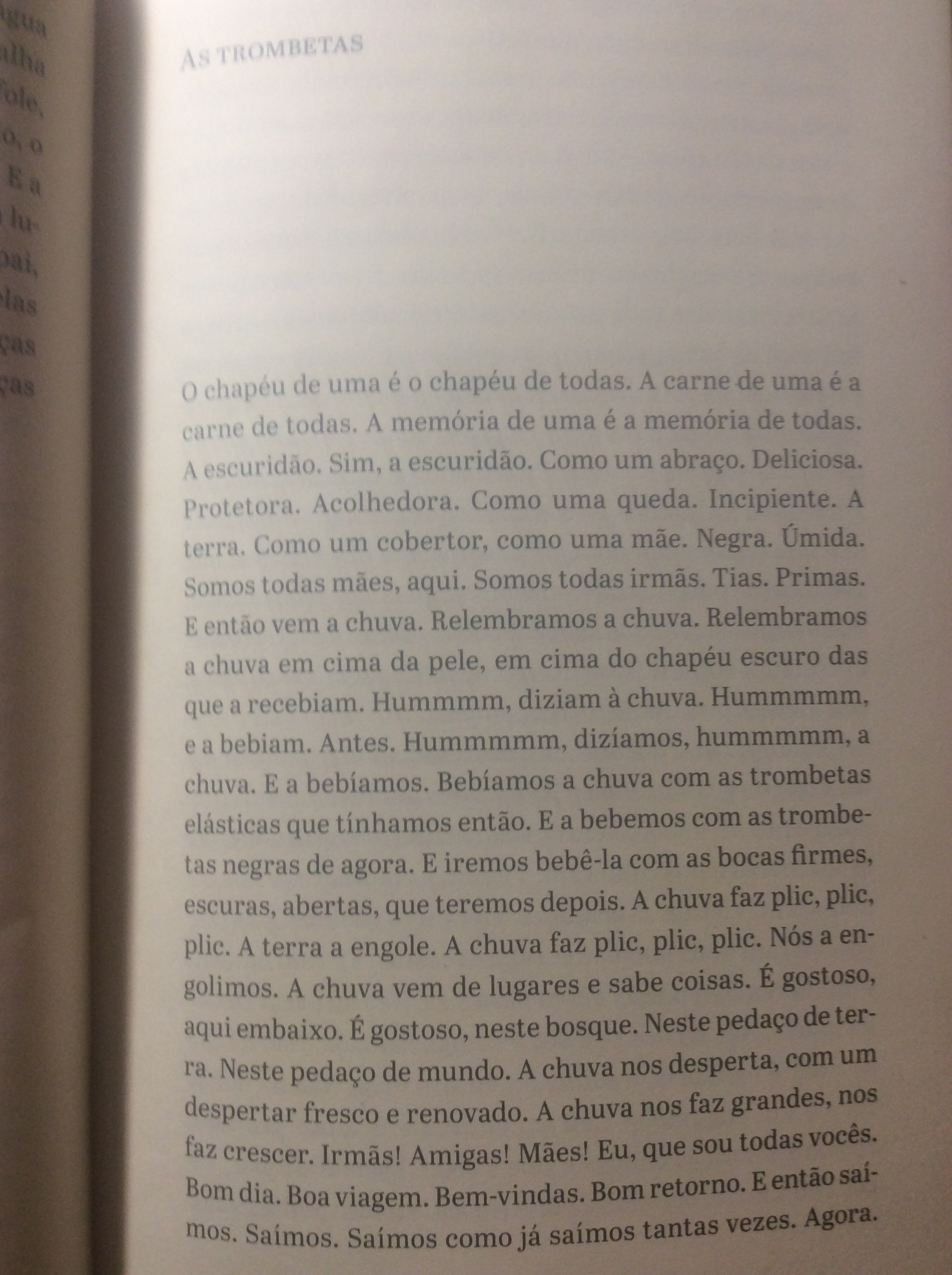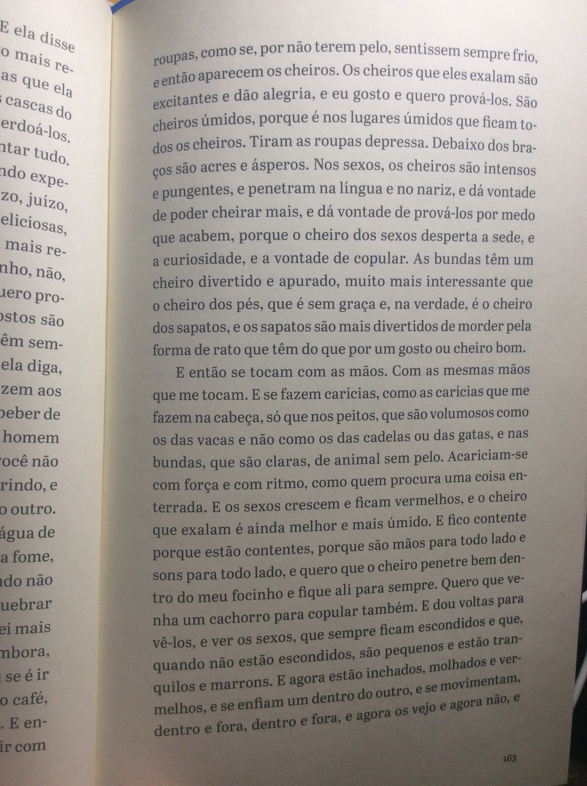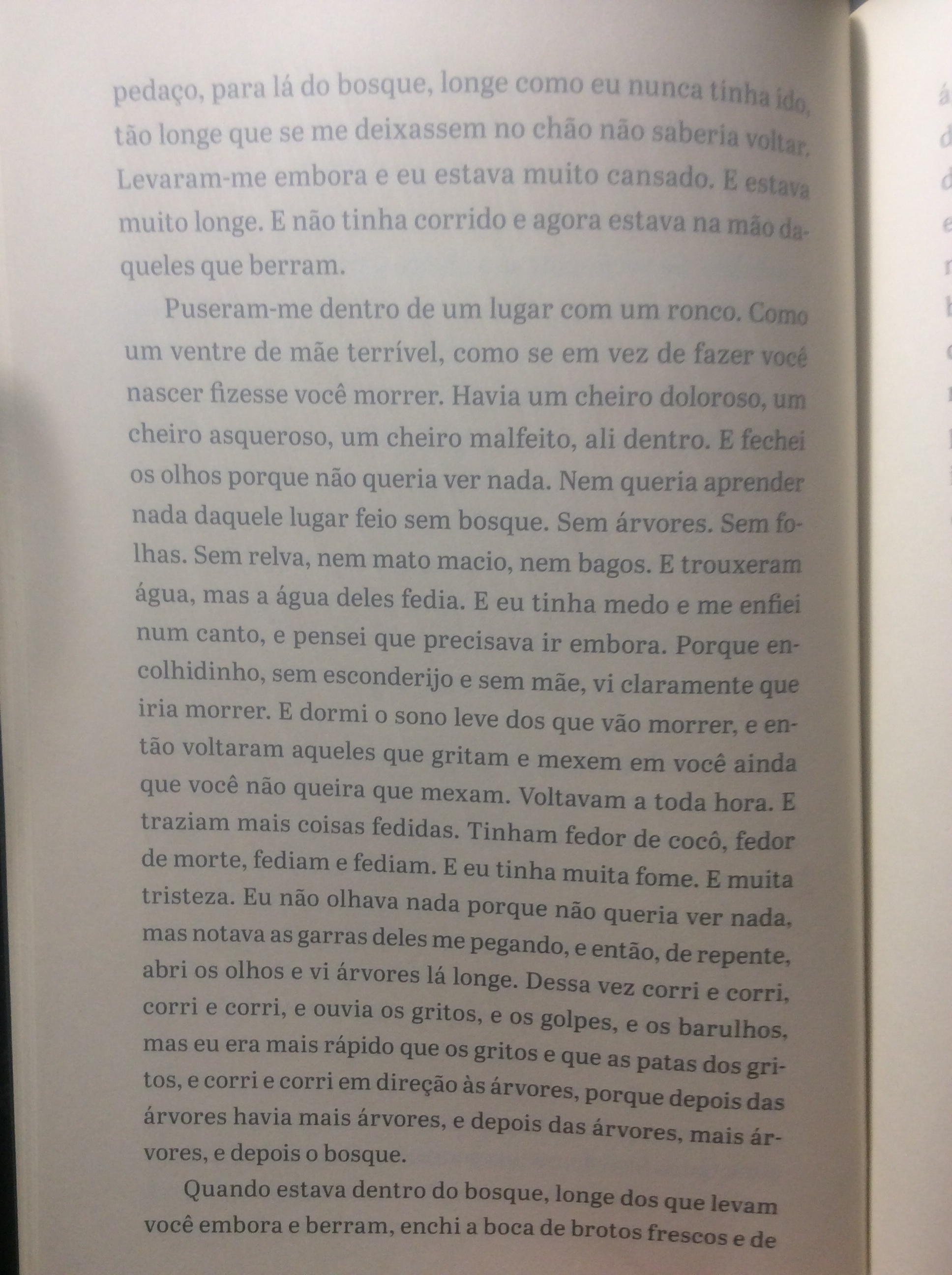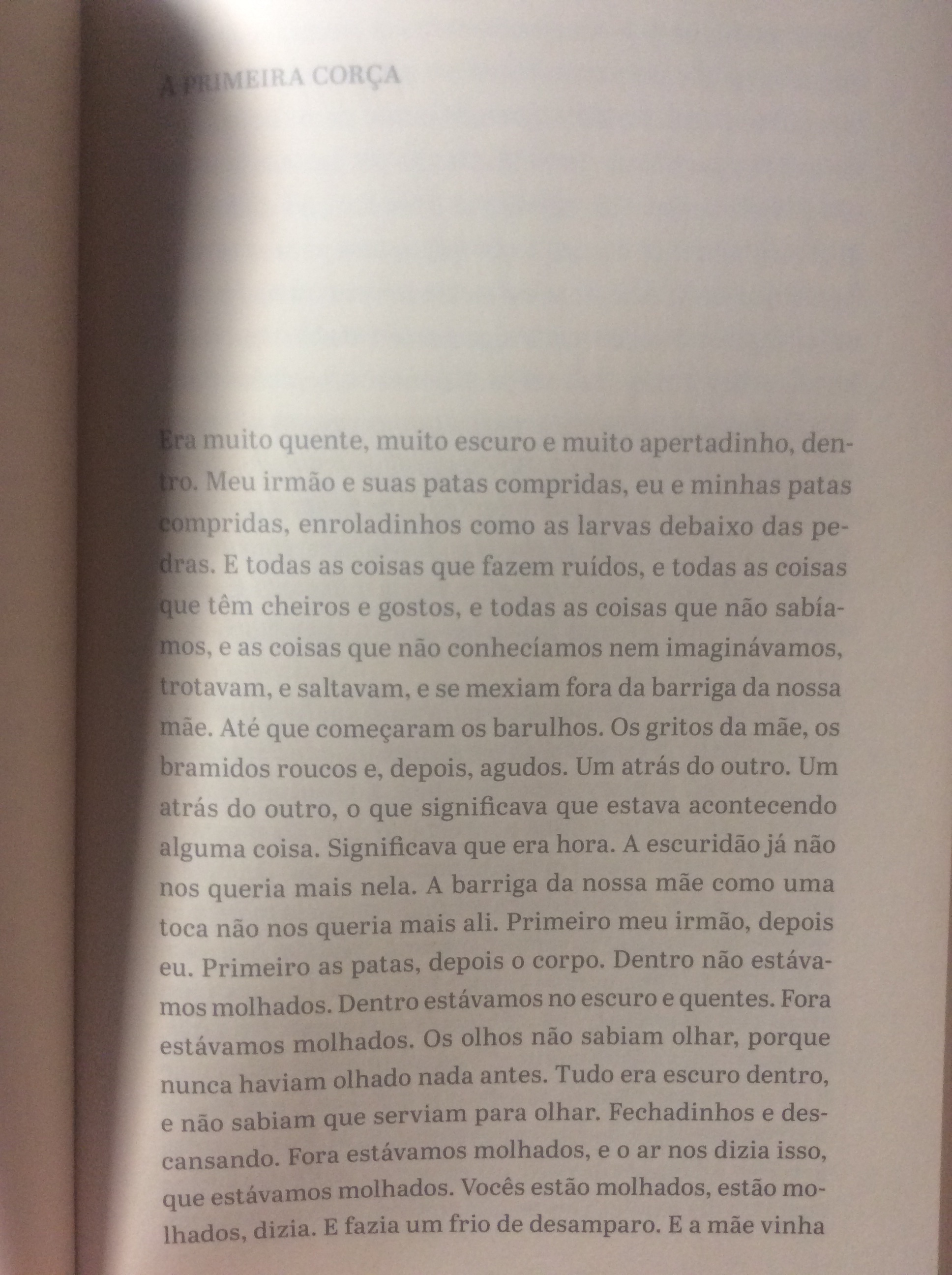 Aqui vão três trechos: um narrado por uma colônia de fungos, outro por uma corça e outro por uma cadela.