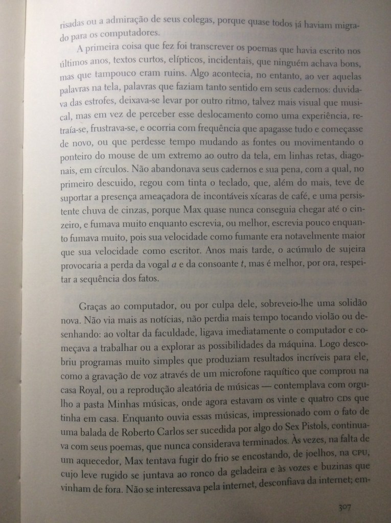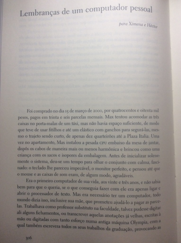 Suponhamos que, para contar a história de um personagem, não usemos sua história diretamente, mas o observemos com um elemento externo como espelho. No conto “Lembranças de um computador pessoal”, as histórias dos amores e dos desamores do professor Max são narradas tendo em perspectiva seu computador.