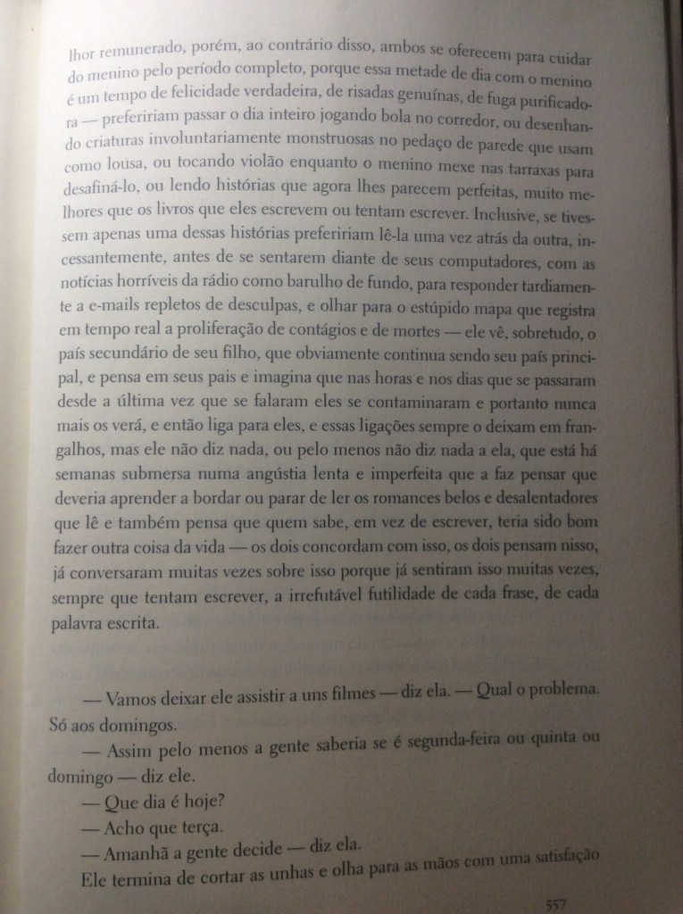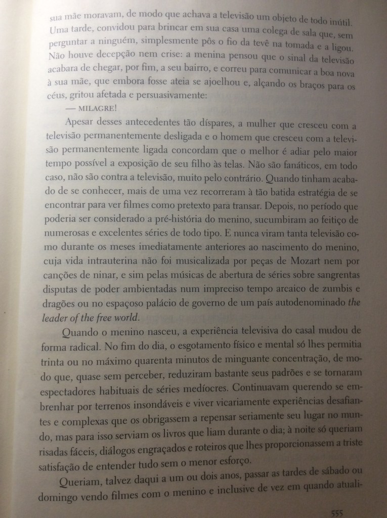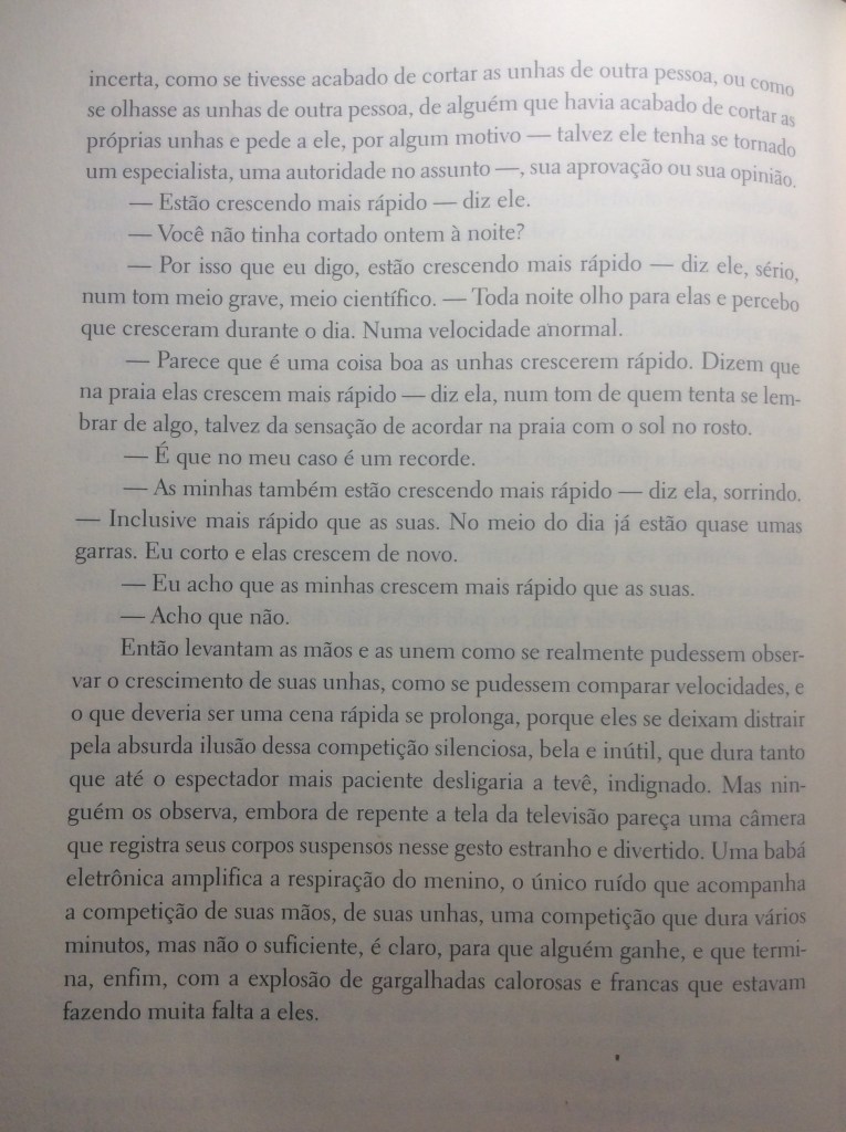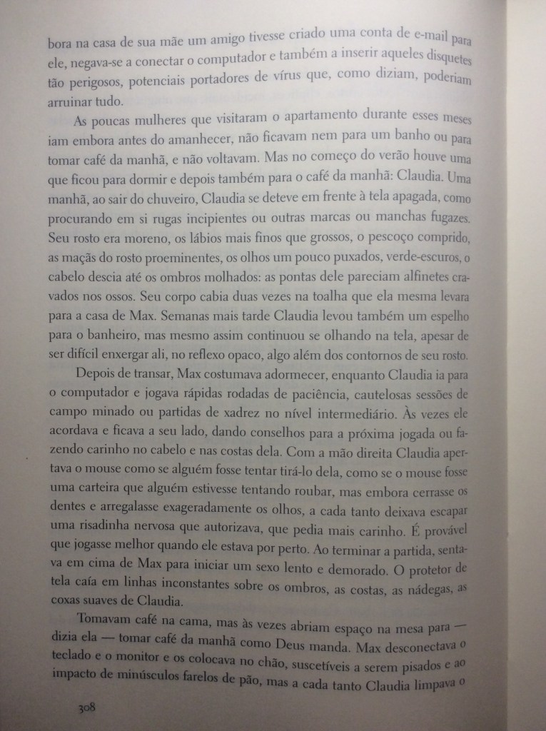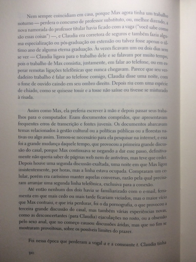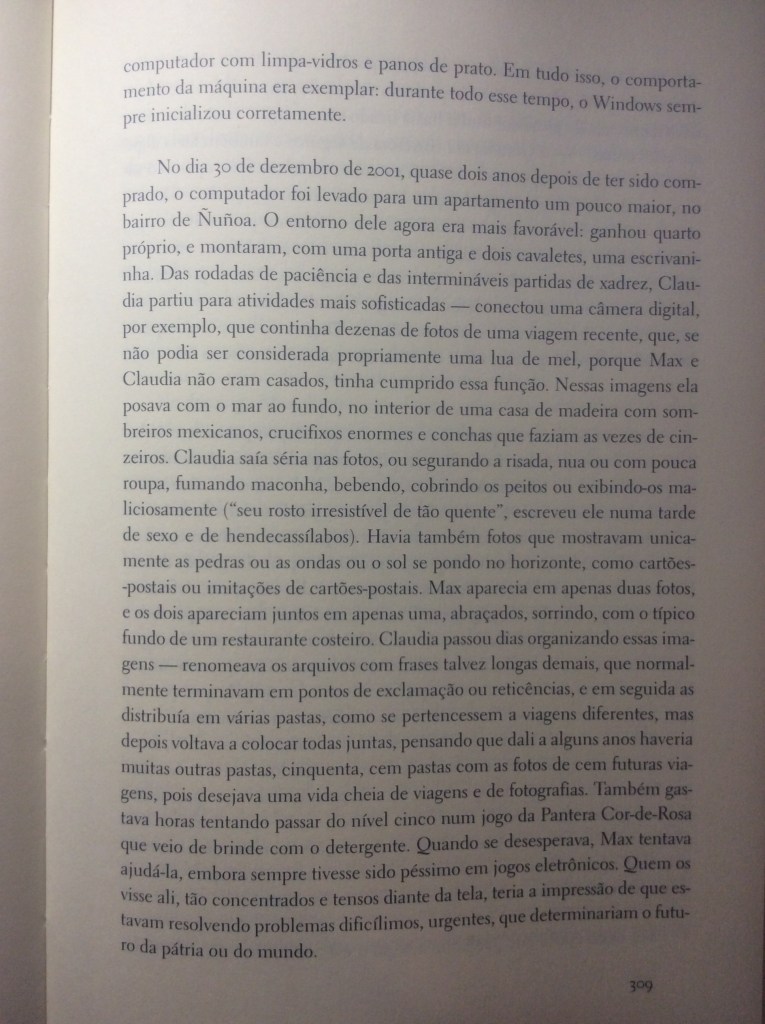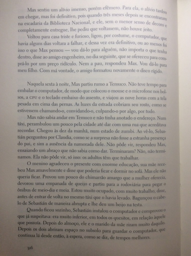 Zambra vai sutilmente acompanhando o esgarçamento dessas relações através da obsolescência do computador. Ele lança o foco da narrativa sobre o objeto, e com isso obtém uma tensão e uma unidade ao longo de todo o texto. Se ele não tivesse usado um objeto externo para dar conta da interioridade dos personagens, sua história perderia todo o drama.