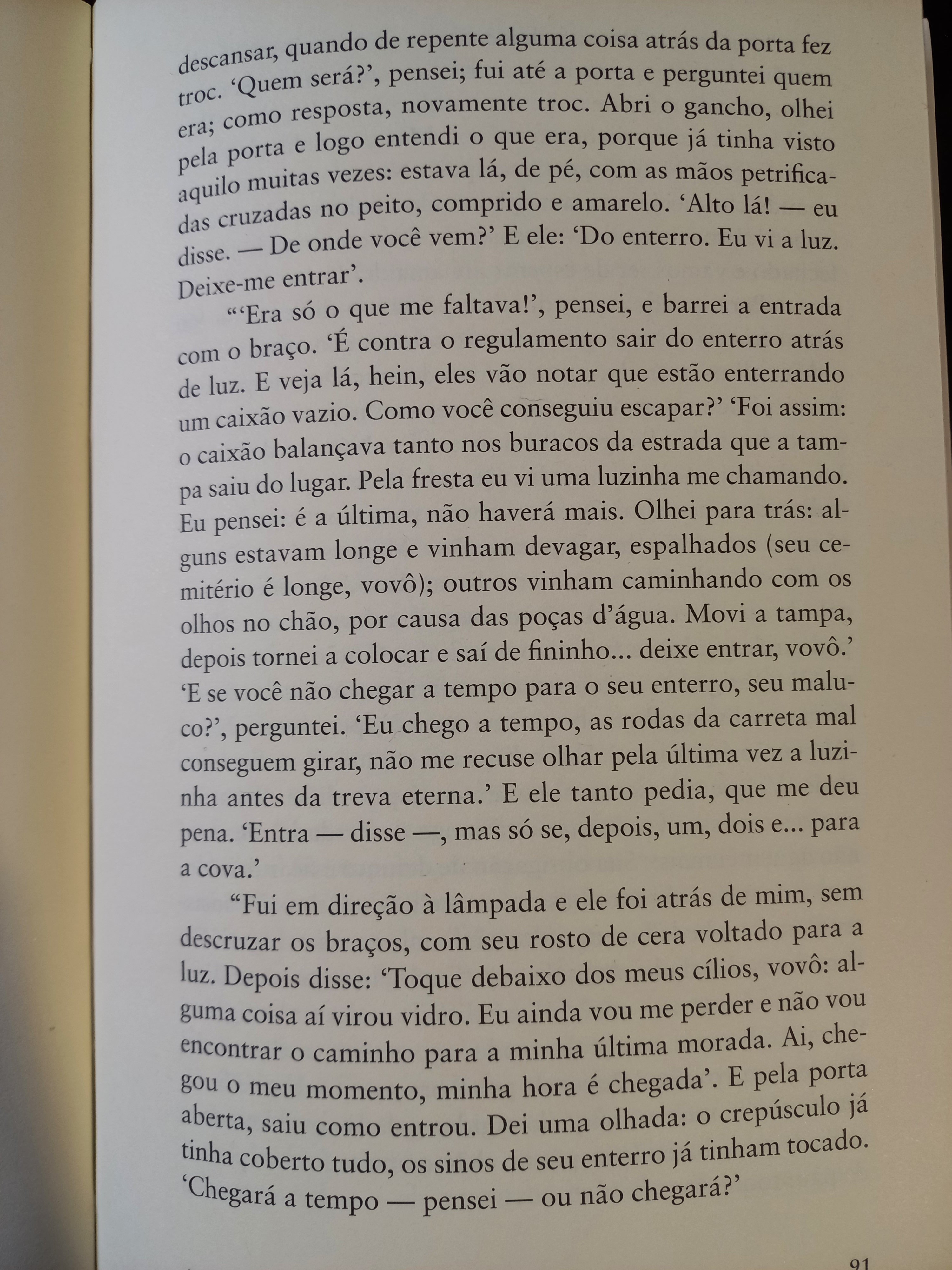 2 – Seu conto se passa com um morto que deve ser enterrado. Quem é o morto? De que morreu? Quem será o encarregado de enterrá-lo? Por que é tão difícil enterrá-lo? Quais as burocracias que cercam um enterro? O morto se recusa a ser enterrado? O morto não quer ir para o além? O morto ainda está vivo?