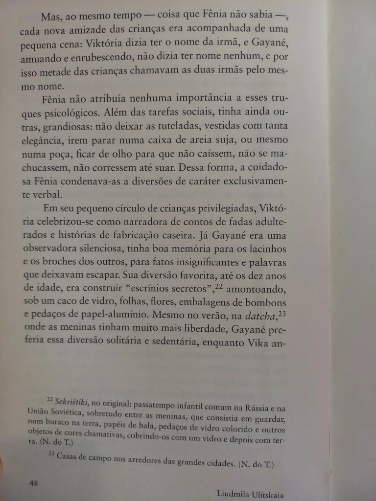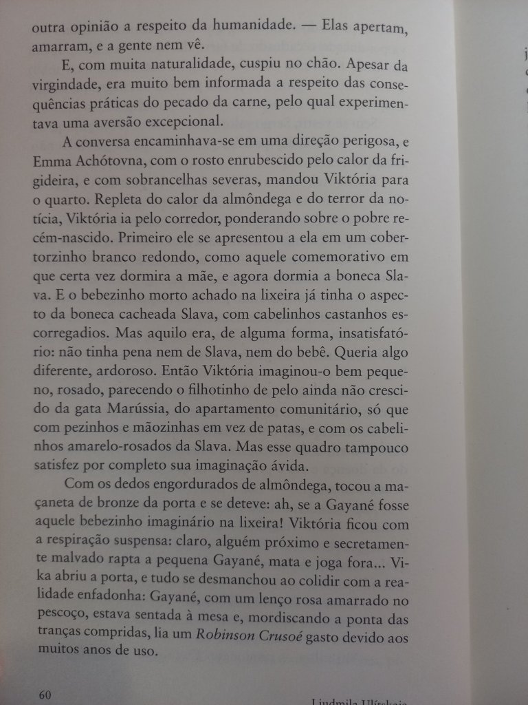 Aos 79, Liudmila Ulítskaia é uma das mais importantes escritoras russas. A única autora a ganhar o Russkii Bukker, prèmio semelhante ao Booker Prize de que foi 5 vezes finalista. Bióloga e geneticista judia, sua especialidade é a micro-história – os eventos familiares ocorridos durante a Segunda Guerra e no pós-guerra. Só começou a publicar, porém, depois dos 50 anos, com a glasnost. Dona de um estilo cristalino, narra quase sempre na terceira pessoa, por vezes se intrometendo nos pensamentos das personagens. Nunca deixa de lado o pano de fundo histórico, como quem se interessa nas maneiras como a História vai se enfiando nos detalhes da vida comum. É uma artista da memória, e por recuperar tantos comportamentos, situações, falares e descrições da época soviética, é uma das autoras mais amados pelos russos – até porque, intelectual pública, é uma grande defensora da liberdade de expressão. Meninas, o livro de onde tirei os dois contos abaixo, é sua primeira obra a sair em português, e só trata de histórias de meninas entre 9 e 11 anos. Aqui em uma excelente entrevista com ela.