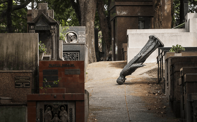 De braços dados, Célia e eu acompanhamos a multidão, que faz uma curva para desviar de um trecho depredado por saqueadores. Passamos ao lado de cruzes quebradas, grades retorcidas a martelo e pedaços de estátuas jogados no chão. Em voz baixa, satisfaço a curiosidade de Célia. Ela sabe da minha relação com Fernando, mas não com Celso. Conto que marquei um encontro com ele à noite. Diante do olhar de seu espantado, digo que estou fazendo uma pesquisa sobre produtos químicos que não devem ser usados em tratamentos estéticos. Rimos discretamente enquanto o cortejo avança. Quando para, percebemos que alguém discursa à beira do túmulo. O vento que oscila as árvores impede que as palavras sejam entendidas àquela distância.