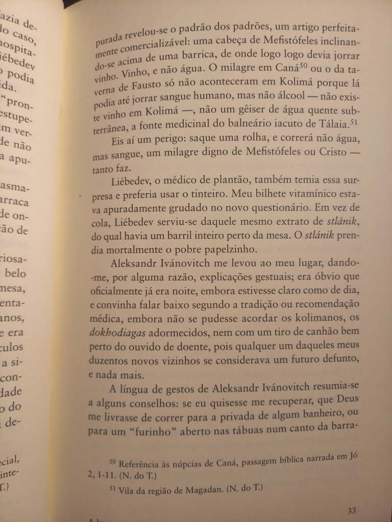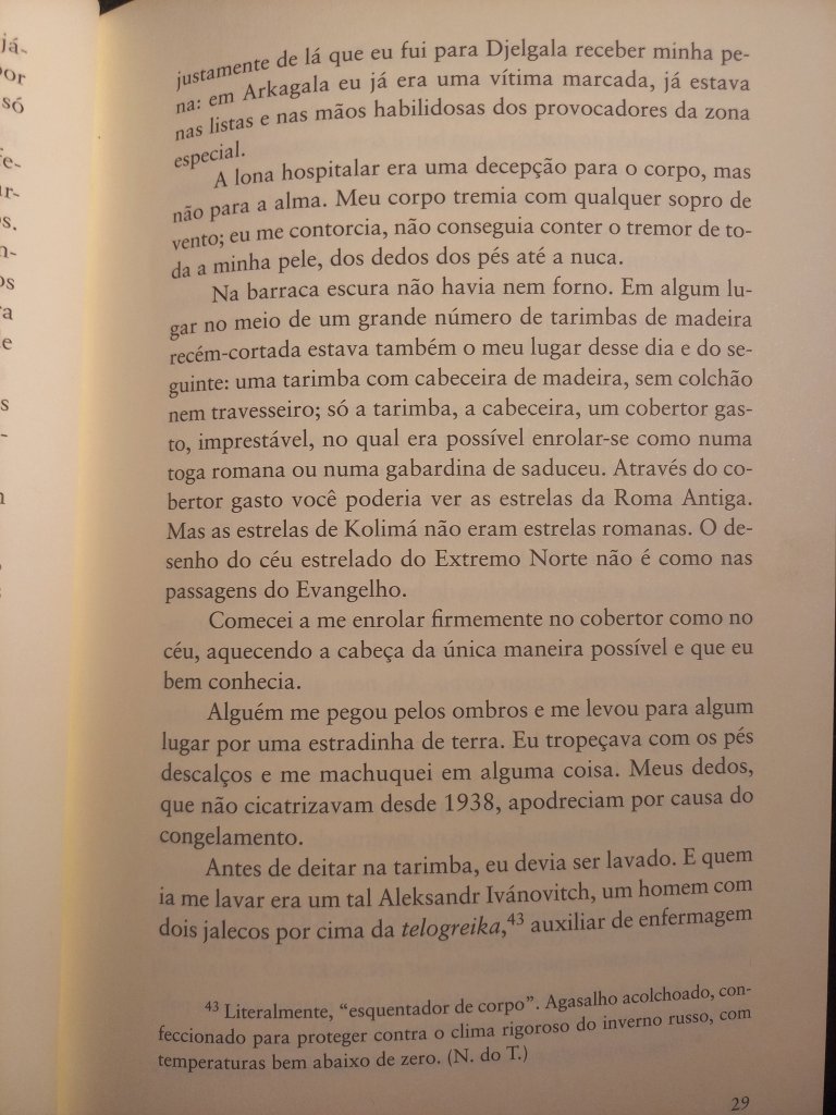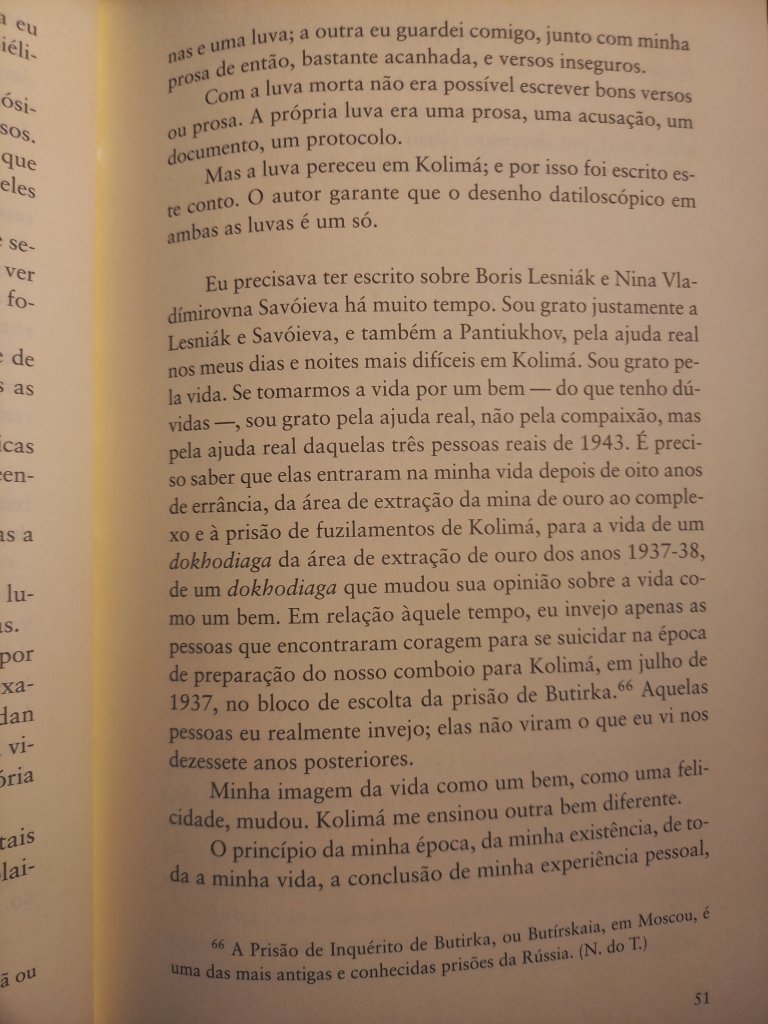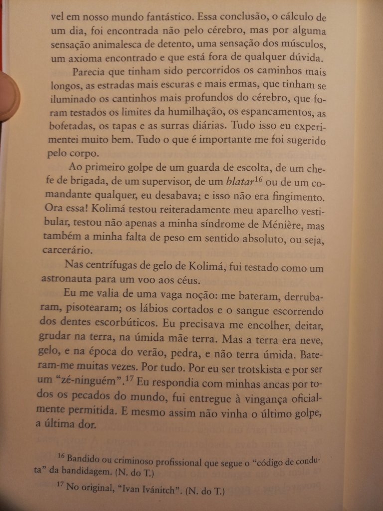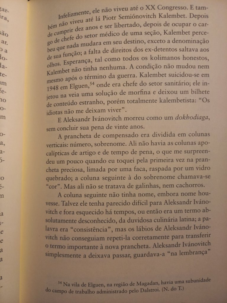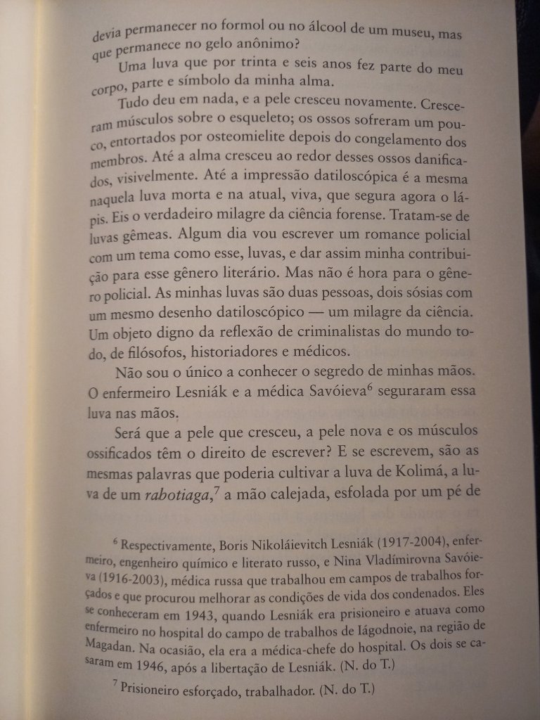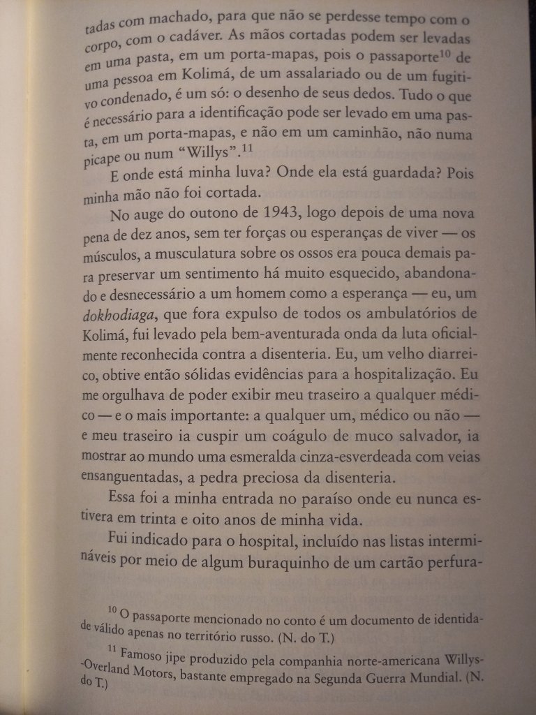 Varlam Chalámov, ao lado de Aleksandr Soljenítsin (Arquipélago Gulag), é um dos grandes narradores dos campos de concentração da era stalinista. Aliás, ambos os livros fazem parte deste verdadeiro subgênero da literatura russa, a literatura presidiária, de que também fazem parte os clássicos Recordações da Casa dos Mortos, de Dostoiévski, e A Ilha de Sacalina, de Tchécov. (Um subgênero mundial, ao lado de livros como Fábrica de Animais, de Edward Bunker, Memórias de um Sobrevivente, de Luiz Mendes, e Estação Carandiru, de Drauzio Varela). Os Contos de Kolimá impressionam por sua crueza e proximidade com outro clássico do gênero – É Isto Um Homem?, de Primo Levi -, ao narrar o verdadeiro holocausto que se abateu sobre milhões de pessoas. Perfazem mais de 2 mil páginas, descrevendo os mais de 17 anos que ele passou como detento, acusado de escrever críticas ao regime soviético. Nunca foram editados em solo russo, a não ser em samizdats: só foram publicados depois da glasnost.