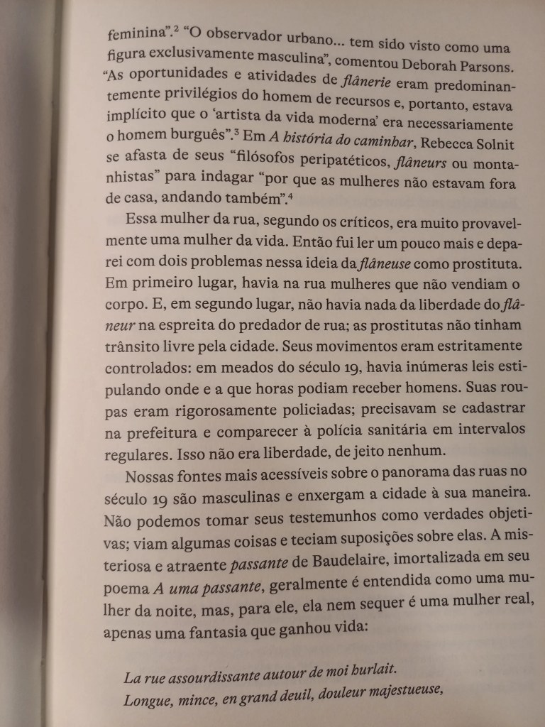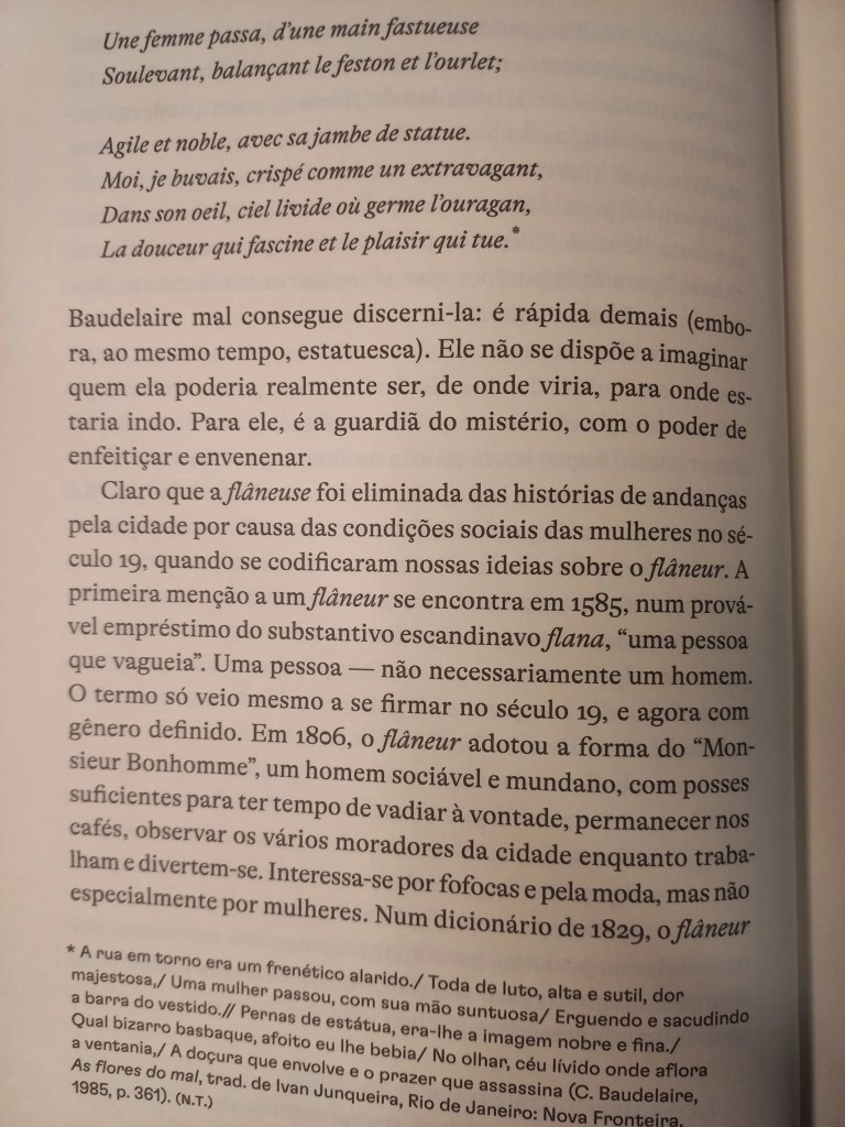 Tem duas referências a relacionar aqui. A releitura da flâneuse de Baudelaire por Vinicius de Moraes,