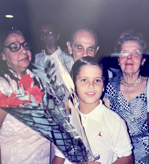 Não tenho ideia de quem deu as flores pro meu irmão. Apesar da tia Helena ser declaradamente encantada por ele “o Pedrinho é o meu sobrinho-neto favorito”, me recordo de seus presentes funcionais cuecas-e-meias. Tia Helena me chamava atenção pelos óculos que cabiam cinco olhos de cada lado, coerente com suas observações sem papas na língua, gesticulando com seus dedos arqueados. Sofria de uma artrose severa, que por alguns anos nutri a imaginação de que caíam como uma luva para o ofício de telefonar nos aparelhos de disco.