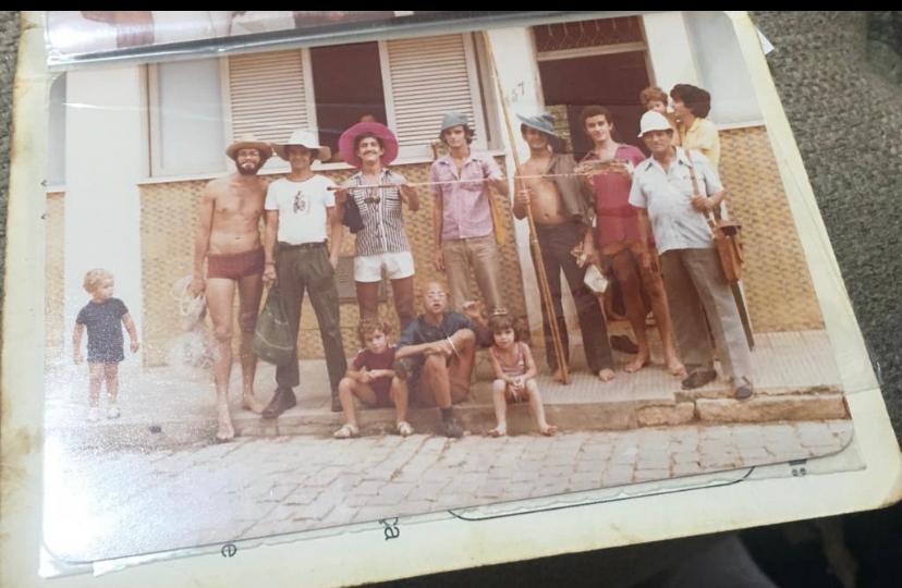 Pois é, na saída para o passeio, os homens posavam para uma fotografia. Na foto antiga, meus tios: Nelsimar, Fernando, Zezé, Ninho (o ex-marido), Nelsinho, Luciano, o vô e, atrás, meu tio Alfredo que não pesca, usa as mãos para tocar lindas músicas nas teclas do piano. Os meninos e meu tio Ricardo, ficavam para trás. Não sei se aparecia qualquer coisa na volta dos pescadores. Peixe normalmente é limpo no tanque e o tanque de cimento vivia lotado de manga ubá. Na geladeira vermelha de gancho, só a leitoa descansava e dava terror nas crianças. Gritos eram ouvidos quando alguém abria a porta até o vô colocar um pano de prato em cima do defunto.