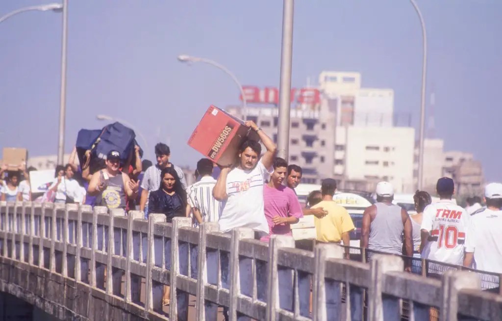 Depois de vacilações mil, Sirilei assumiu, tomou jeito de contrabandista e aprimorou suas técnicas. Comprava um microsystem daqueles tipo Sony, com módulo no centro para entrada de CD e duas fitas K-7 de cento e oitenta dólares -trinta acima do valor permitido. Passávamos pela alfândega, ela com aquele olhar furta-cor de mãe e eu todo mimoso abraçado ao aparelho de som, pezinhos pra dentro nos tênis falsificados da Nike. O plano era esse: levava o dinheiro contado, dobrado dentro do porta moedas bordado com uma imagem de Jesus Cristo de olhos azuis. Ela declarava o aparelho de som catando os dólares que faltavam em meu bolso, enquanto eu dizia estar feliz em ajudar com minha mesada. Atravessávamos a alfândega com mais de mil dólares em mercadorias escondidas dentro das caixas de som, que descobri como abrir, depois que ganhei uma chavinha de fenda que vinha de brinde, junto a uma revista do Instituto Padre Réus.