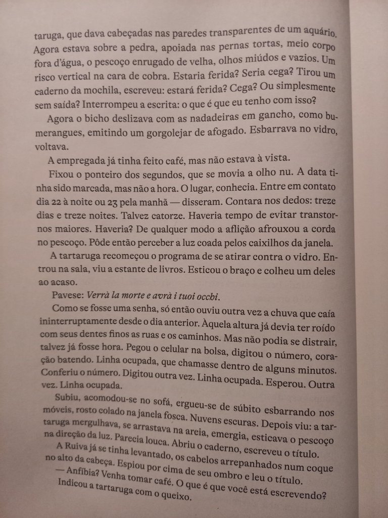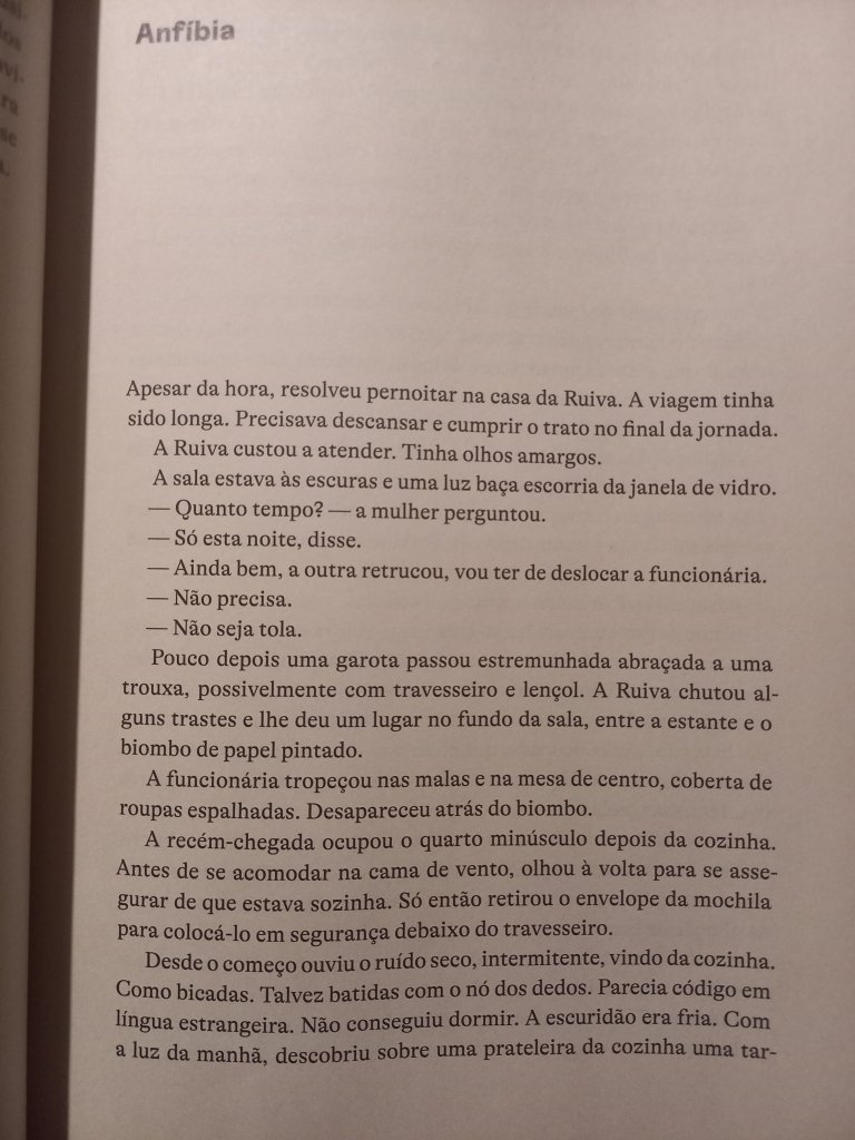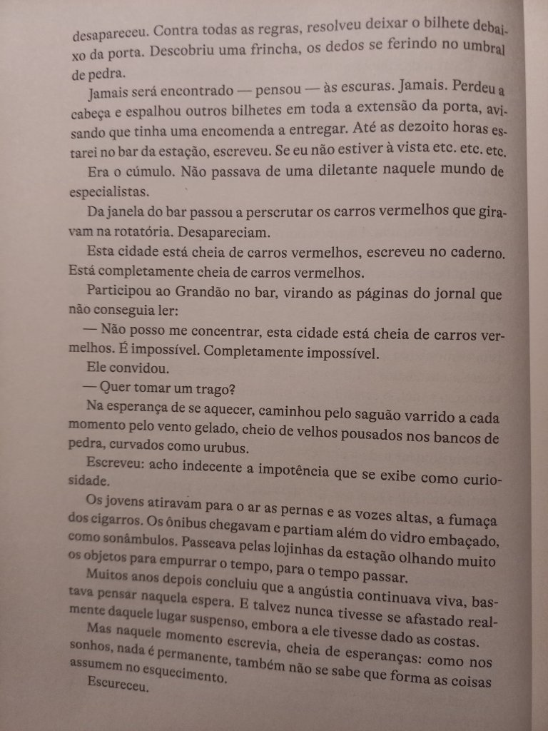 No conto, a personagem de Vilma Arêas precisa concluir uma missão, falar com determinada pessoa, passar uma específica mensagem, ter um encontro com alguém que nunca diz quem é e jamais sugere do que se trata esta comunicação.