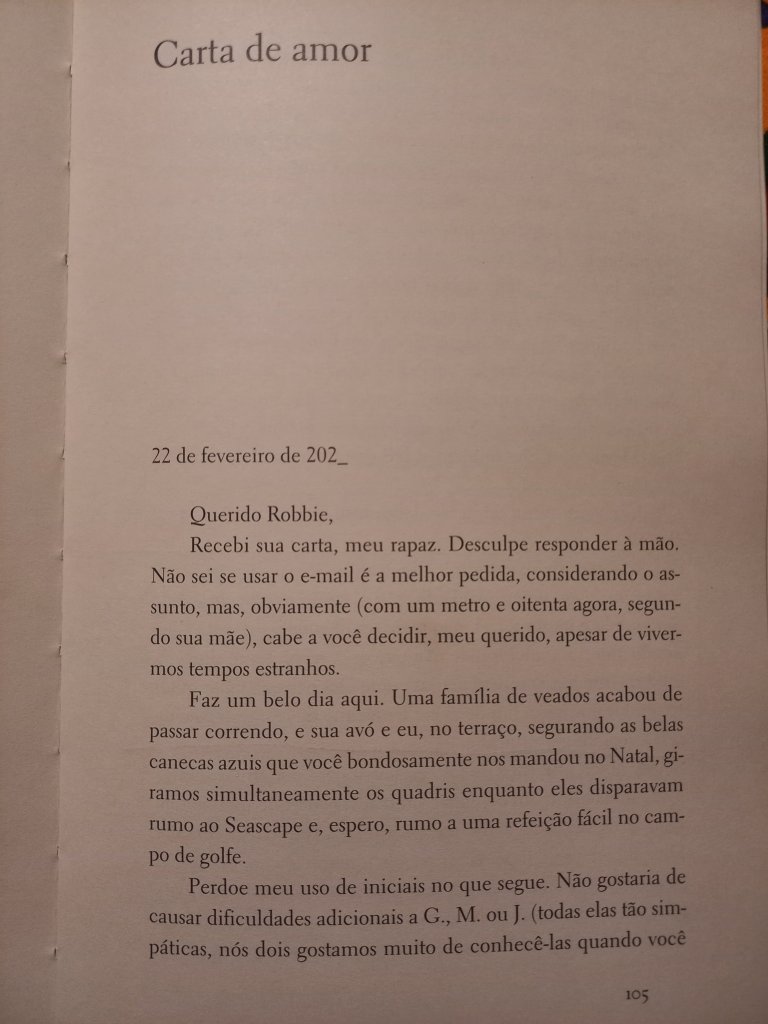 Lembra da proposta “carta de amor num edifício em chamas“, em que o remetente conversava com o destinatário sobre o passado enquanto se desesperava com o presente e com o futuro próximo? Esta é a pegada da sua carta. (Releia a proposta para recordar.)