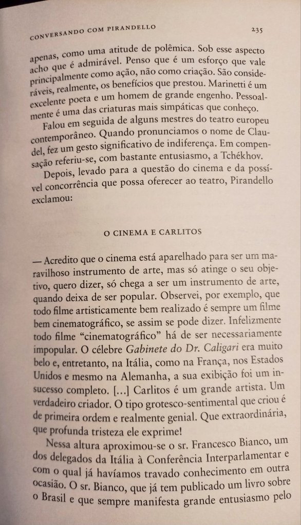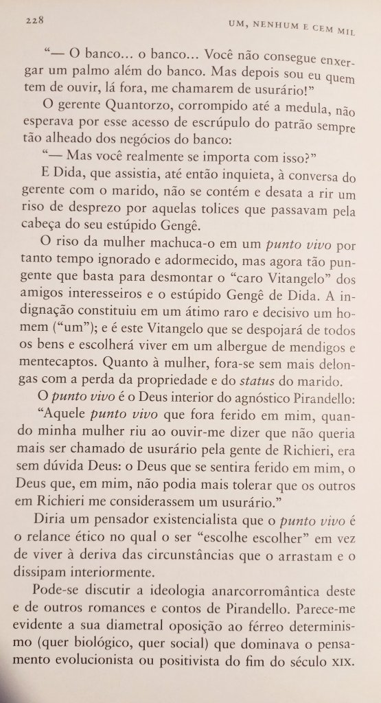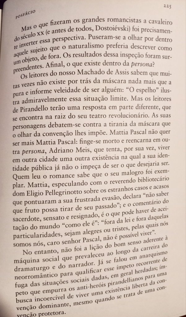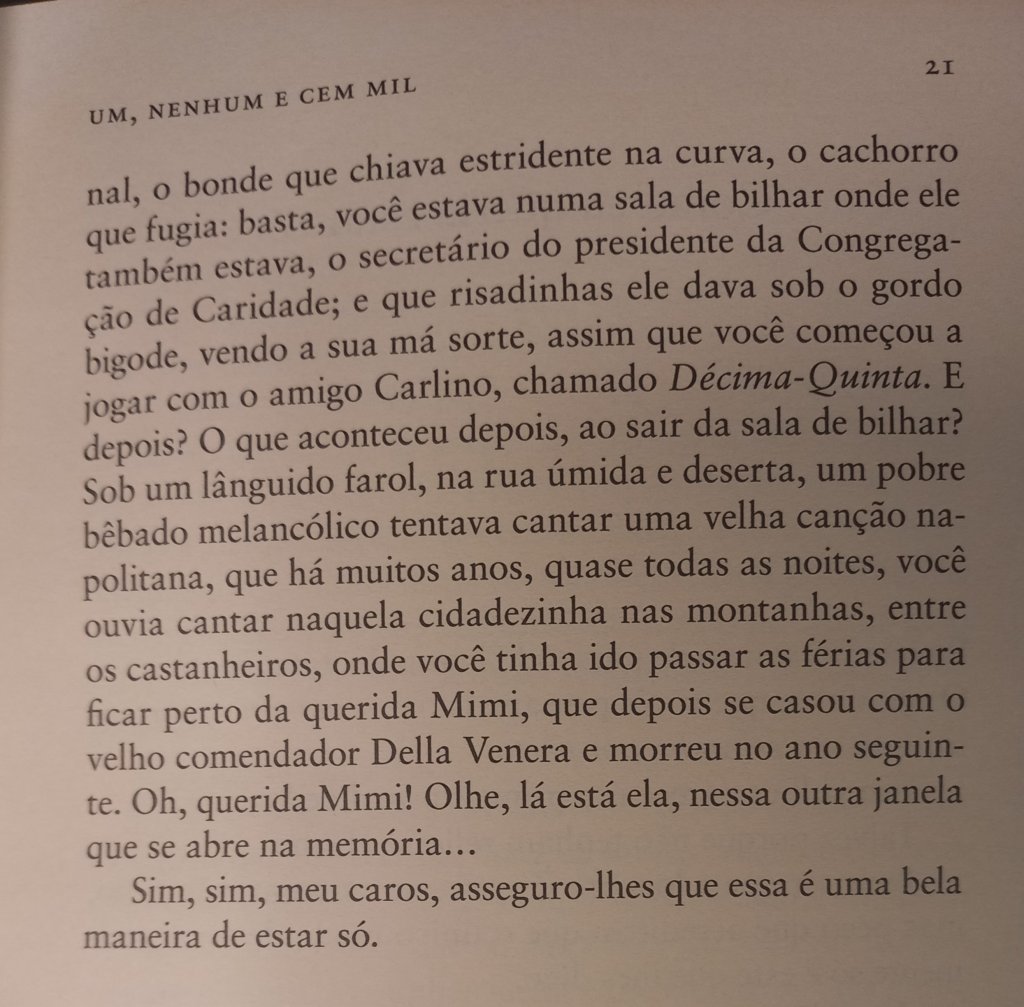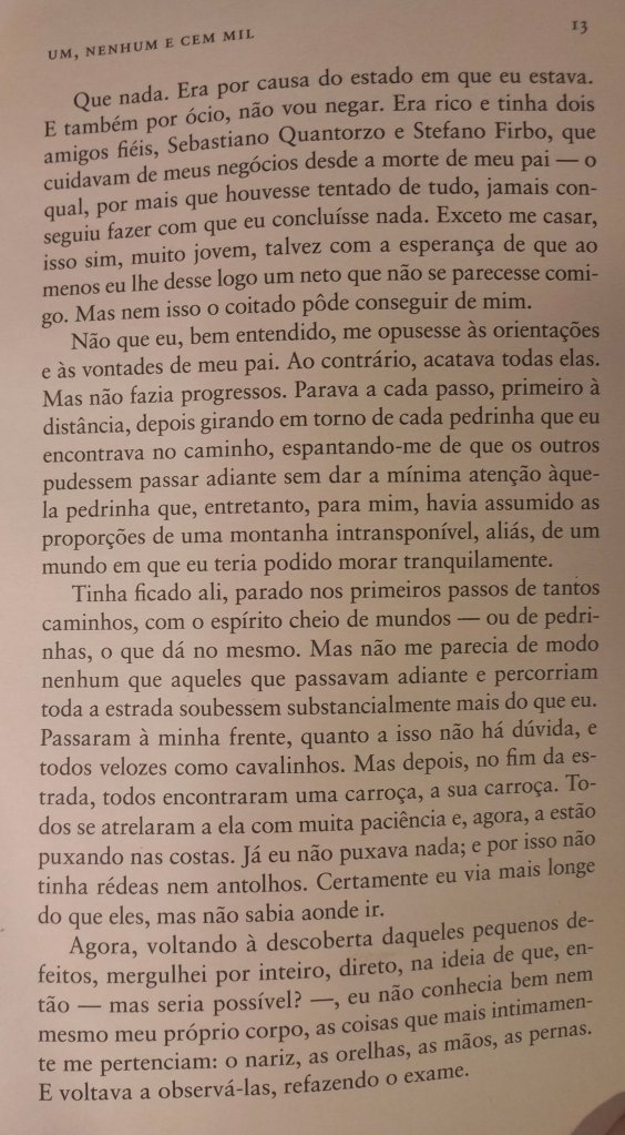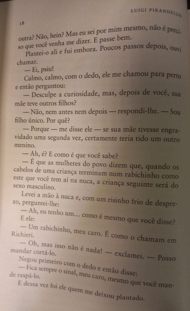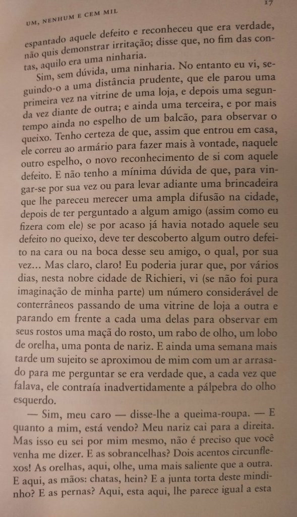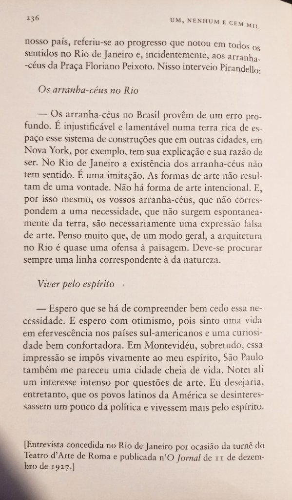 Pirandello é autor de um dos exemplos máximos de metaficção no século 20, Seis Personagens à Procura de Um Autor, já viram? Não é preciso dizer mais nada – a não ser que o maravilhoso Um, Nenhum, Cem Mil, romance que publicou pouco antes de ganhar o Nobel, acaba de ser relançado, com aparatos de Alfredo Bosi e Sérgio Buarque de Holanda, além de nova tradução a cargo de Maurício Santana Dias.
