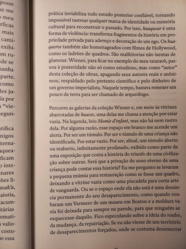 Exploração (Todavia) é um passo além das investigações de Gabriela Wiener usando a forma ensaio e o próprio corpo. A escritora peruana, conhecida por reportagens em que coloca a si mesma como protagonistas, lançou em 2008 Sexografias, coletânea de reportagens sobre assuntos como atores pornô, clube de suingue, polígamos, violência de gênero e sua vida de mãe dentro de um trisal. (Ela estava com Juliana Frank naquela famosa mesa da Flip.) Exploração radicaliza as empreitadas de Sexografias e Nueve Lunas, reportagem sobre a própria gravidez, unindo jornalismo e ensaio para insurgir-se contra o jugo colonial de territórios, imaginário e tesão. O corpo que protagoniza este livro é conflagrado por disputas que remontam à história e se desdobram nos incertos movimentos do desejo e do afeto. A morte do pai e os fantasmas do passado marcam esta exploração memorável sobre o amor, o desejo e o racismo na América Latina. Da obscura biografia do tataravô austríaco, arqueólogo malogrado, às redes fluidas do poliamor, Wiener define o ensaio pessoal, gênero que honra na altura de uma Vivian Gornick, como “o sofrido artesanato do eu”. Não se poderia encontrar definição melhor do exercício que resulta nestas páginas espantosas.
