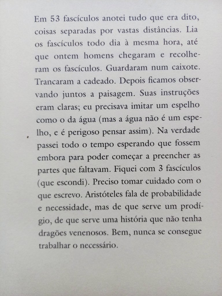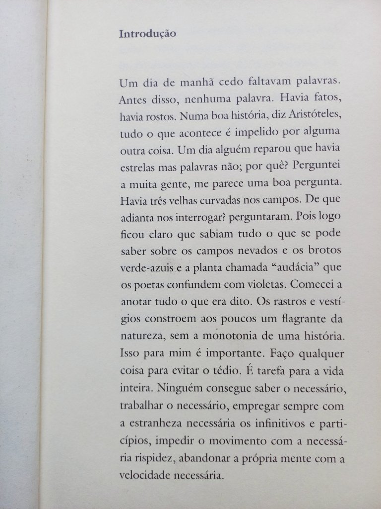 Pode escrever na primeira pessoa, pode puxar alguma lembrança ligada à literatura, ou à sua própria vida, pode fazer alguma reflexão nonsense sobre qualquer assunto. Mas tente fazer isso de um jeito criativo. Veja como Carson não repete nenhuma vez a estrutura de uma frase para a seguinte.