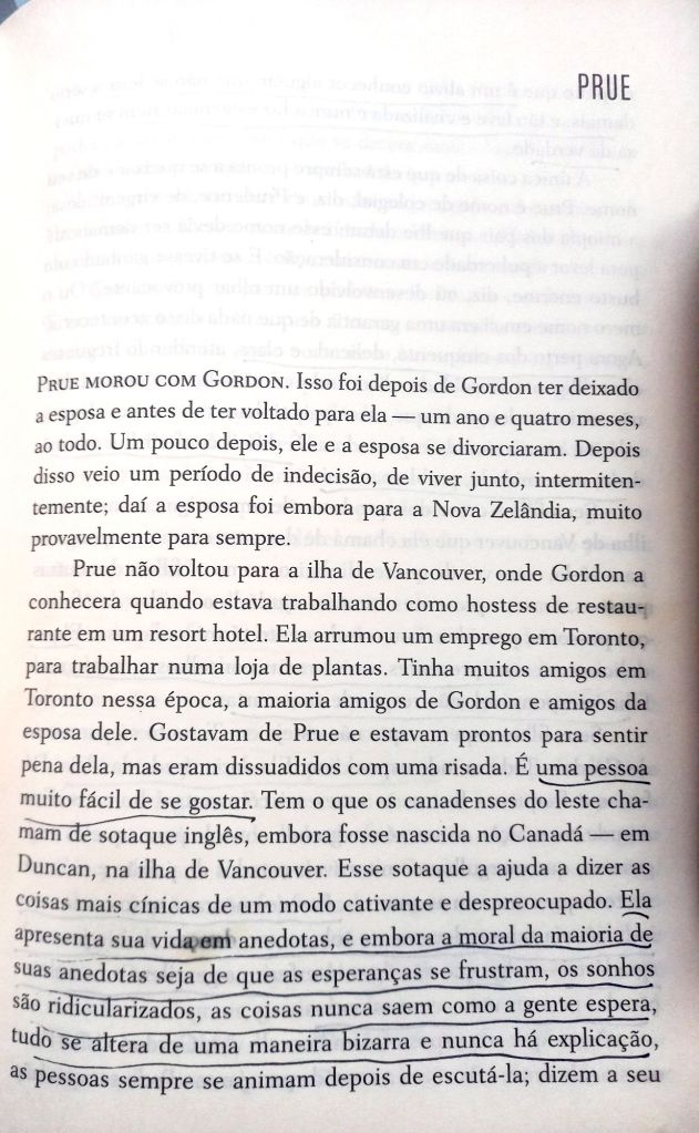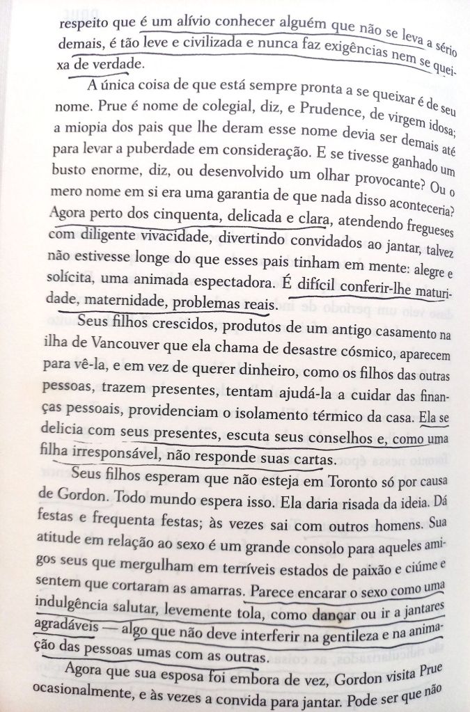 Há um quê de resistência, de alcance ousado em Munro. Somos informados, acerca de uma de suas heroínas não tão intercambiáveis assim: “Gloria havia feito um curso de redação criativa, e o que o instrutor lhe disse foi: ‘Coisas demais. Há coisas demais acontecendo ao mesmo tempo, e pessoas demais’ “.