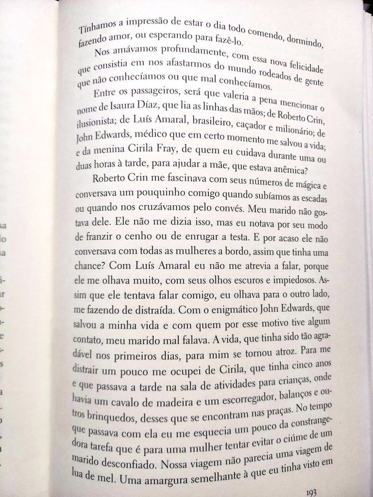 Sempre achei curiosa a semelhança deste conto com o filme Lua de Fel, de Roman Polanski (além, claro, com Titanic). Pra quem perdeu a chance de ver esse clássico, basicamente é a história de um casal lindo e jovem que vai passar a lua de mel em um cruzeiro e se envolve com outro casal, meio bizarro. Evidentemente as coisas não dão certo para o casal, mas por isso mesmo é que dão muito certo para a narrativa.
