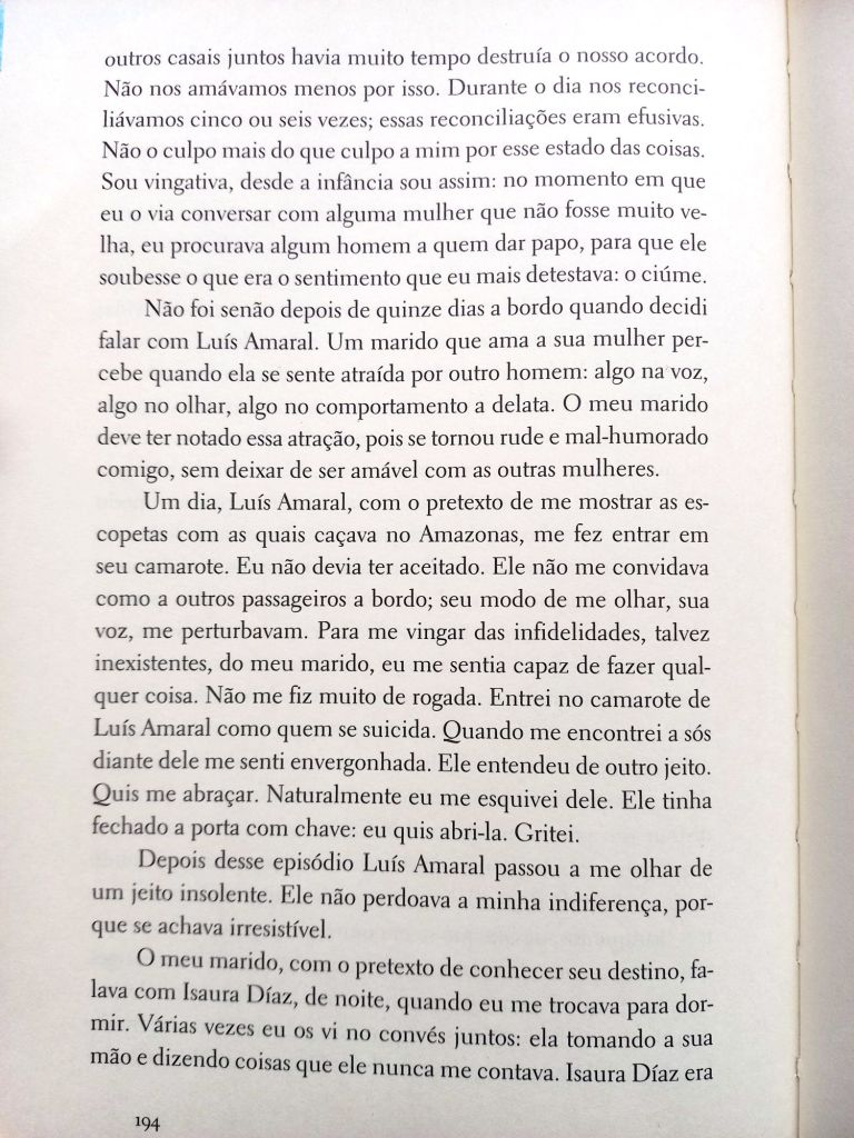 Uma coisa que gosto nos relatos de Silvina Ocampo é a velocidade. Seus contos curtos são quase sempre estruturados na forma de contação, com algumas aberturas dentro da narrativa para a criação de cenas. No conto acima, por exemplo, destaco a cena da sedução do brasileiro, a cena em que observa o marido conversar com a colega de viagem e a cena final. Mas quase todo o resto d história é fundada na fábula, na contação, na descrição rápida dos ambientes e dos personagens e dos estados de ânimo de casal.