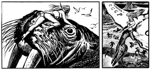 MOTE: Em meados dos anos 60, um samizdat (fanzine) chamado Oito vezes Octobriana (Восемь раз Октобриана) circulou discretamente entre estudantes e saraus de poesia dos países da Cortina de Ferro. Uma cópia carbonada e com tradução para o italiano teria chegado na FFLCH, de onde viria a história a seguir. A hq foi publicada pirateada e sem créditos na edição número 06 da revista Cucamonga em fins da década de 70. A história foi falsamente creditada ao ilustrador tcheco Zdenek Burian e a um certo poeta V. Limonov. Os autores verdadeiros são desconhecidos.
