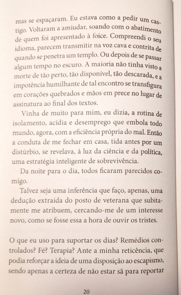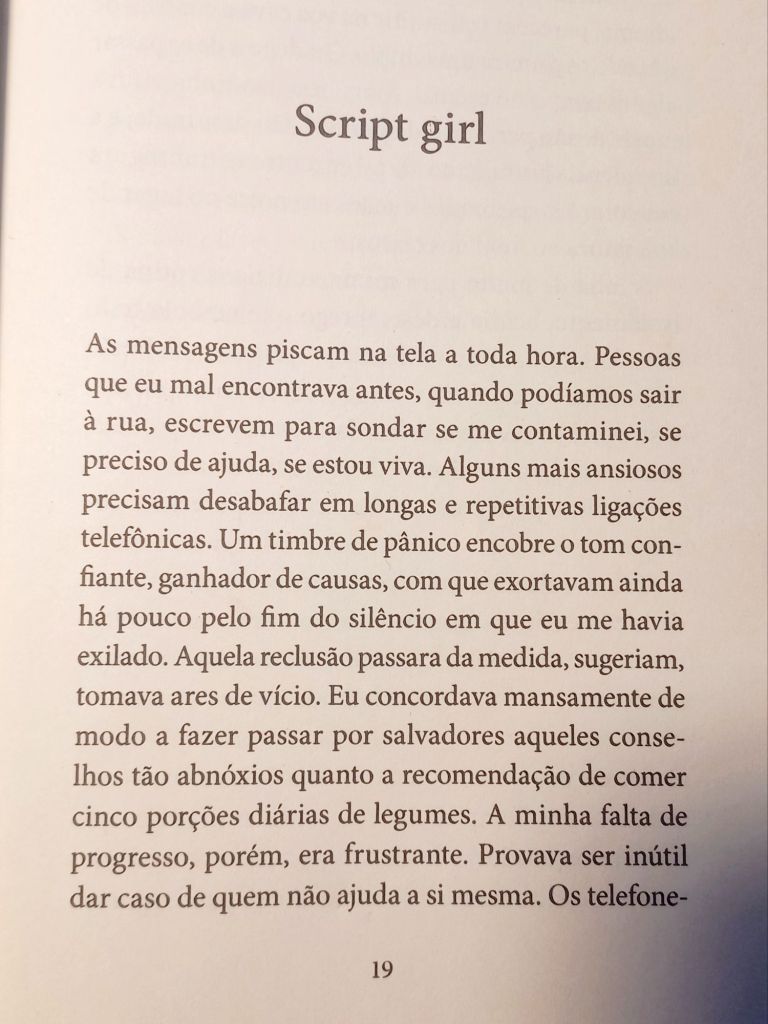 Adriana Lunardi, catarinense-carioca, é roteirista (Ilha de Ferro, entre outros) e autora das coletâneas de contos Vésperas, Corpo Estranho e A Vendedora de Fósforos. Muito premiada, foi publicada em vários países. Sua especialidade é o conto. Tem muita classe e é especialista na criação de imagens originais. O conto abaixo é de seu livro mais recente, Contos Céticos (Record), e se passa durante a pandemia.