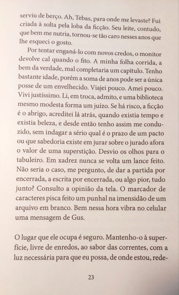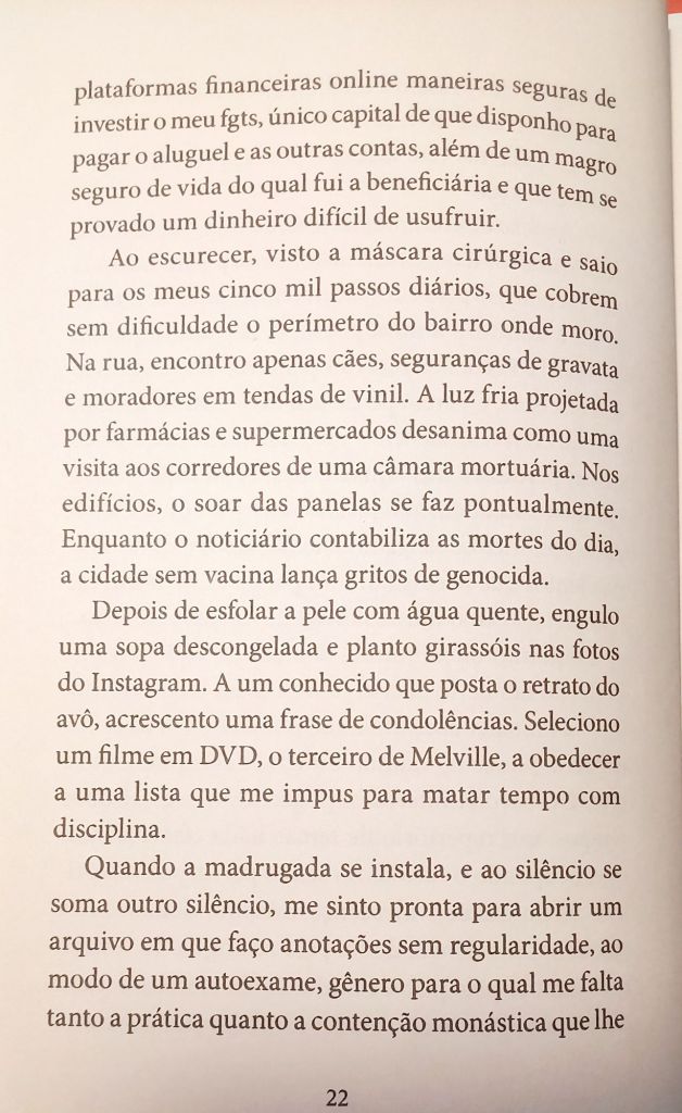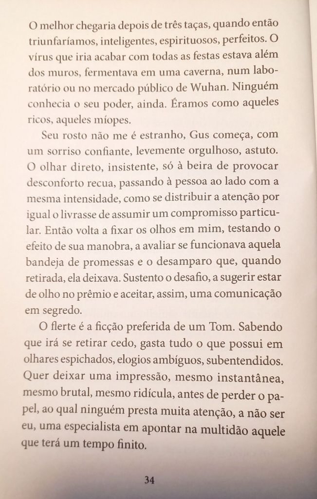 Atmosférico, somente um fiapo de enredo, o conto de Lunardi se inscreve na tradição do tropo “a dama cercada pelos celibatários“. Ou seja, Odisseia: Penélope, enquanto espera Ulisses, é cortejada por inúmeros homens. Aqui, a espera é pelo fim da pandemia, e enquanto isso a narradora vai flertando.