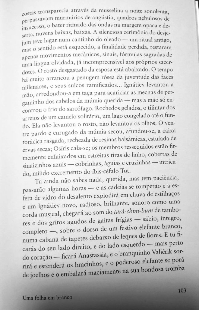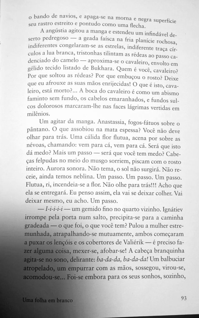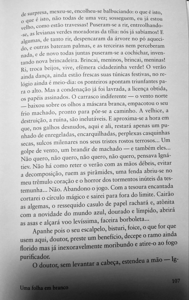 Isso ocorre, por exemplo, em “Bem me quer – mal me quer”, em que duas meninas convivem com duas babás – uma amada e outra odiada – que as conduzem, através de fábulas ou canções folclóricas, para um mundo de fantasia alegre ou aterrorizante. Já no conto que dá nome ao livro temos uma linda descrição de uma infância livre, com aventuras nos jardins da vizinhança, em que tudo é grandioso e valioso. São crianças que idolatram a casa e as coisas do tio, mas o que parece tão dourado e precioso na infância pode não ter o mesmo valor com o tempo. E em “Encontro com o pássaro”, Petia é um menino com uma imaginação incrível, alimentada por suas leituras e pelas histórias de Tamila, uma mulher que ele acredita que será sua esposa um dia. No início do conto ele constrói toda uma aventura mitológica apenas observando o seu prato de comida no jantar. Tamila é seu único refúgio para escapar da solidão e de seus medos, especialmente do medo de que seu vovô doente morra. Foi o meu conto preferido da coletânea, os personagens e o clima sombrio criado pelas figuras dos pássaros foram perfeitamente construídos.