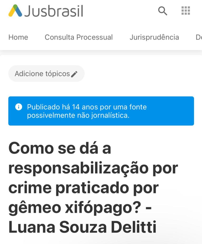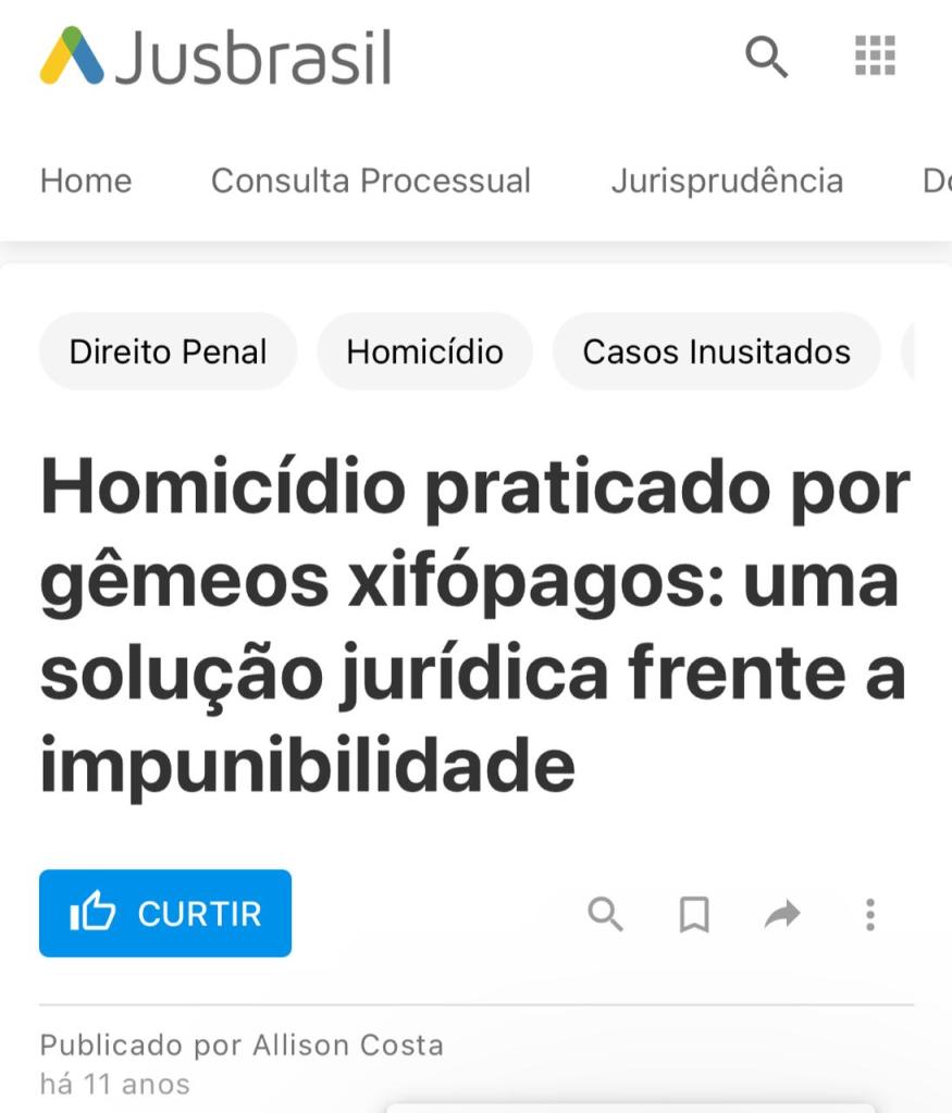 2. O portal Âmbito Jurídico nos alertou que “o incômodo dos doutrinadores e professores parece estar no fato de que os gêmeos xifópagos estão grudados um ao corpo do outro”.