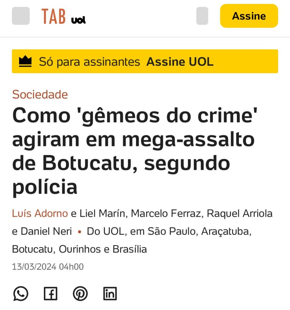 Como “gêmeos do crime” agiram em mega-assalto de Botucatu, segundo polícia