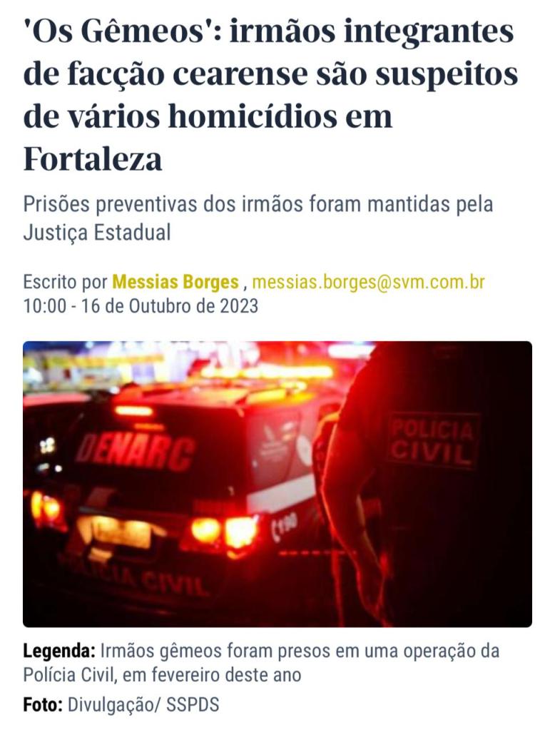 ‘Os Gêmeos’: irmãos integrantes de facção cearense são suspeitos de vários homicídios em Fortaleza