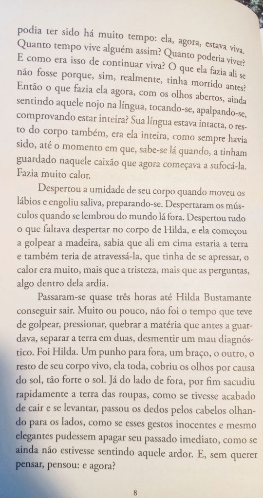 Salomé Esper é uma argentina de 40 anos nascida em Jujuy. Seu primeiro livro é este A Segunda Vinda de Hilda Bustamante (trad. Sergio Karam, Autêntica), que prossegue a trilha do realismo mágico de García Márquez. Conta a história da senhora Hilda, que depois de morta aos 79 anos, resolve tornar à vida para reanimar o seu amor secreto por Àlvaro.