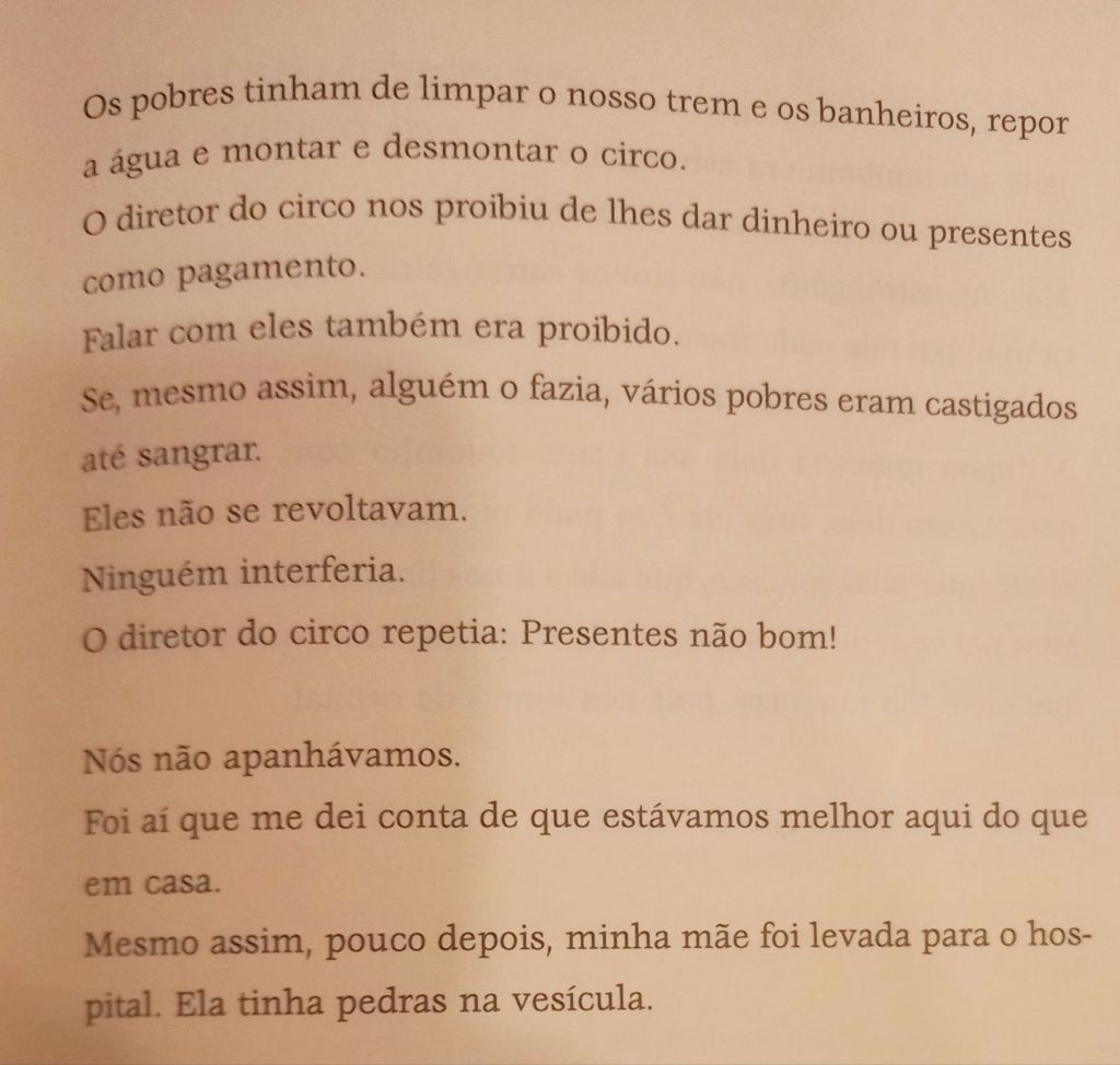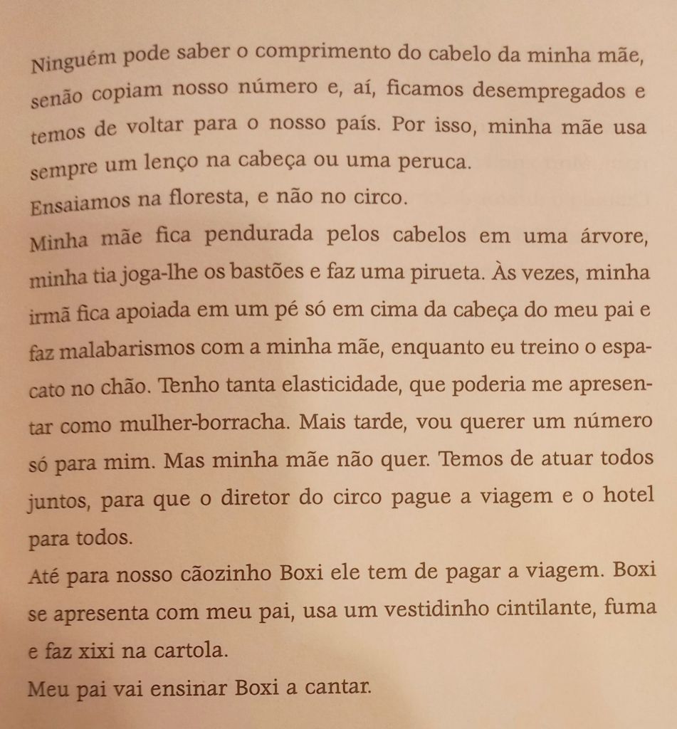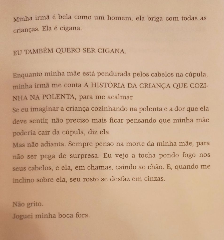 Como a Criança Cozinha na Polenta (DBA, trad. Fabiana Macchi, selo Risco:Ruído, esgotado, na EV tá 300 paus) é um dos raros livros deixados por Aglaja Veteranyi antes de abreviar sua vida, aos 40 anos. Veteranyi viveu na Romênia com sua família circense até fugirem da ditadura Ceaucescu para um périplo ciganesco pela Europa, terminando na Suíça, onde ela se estabeleceu e começou a escrever, em alemão. Então talvez este livro – narrado por uma menina filha de uma malabarista que se pendura pelos cabelos com um palhaço que não acredita em Deus – seja uma autoficção. A genialidade do romance é como a autora faz com que a gente veja a realidade com os olhos de uma criança: uma realidade ao mesmo tempo mágica, bizarra, doce e violenta.