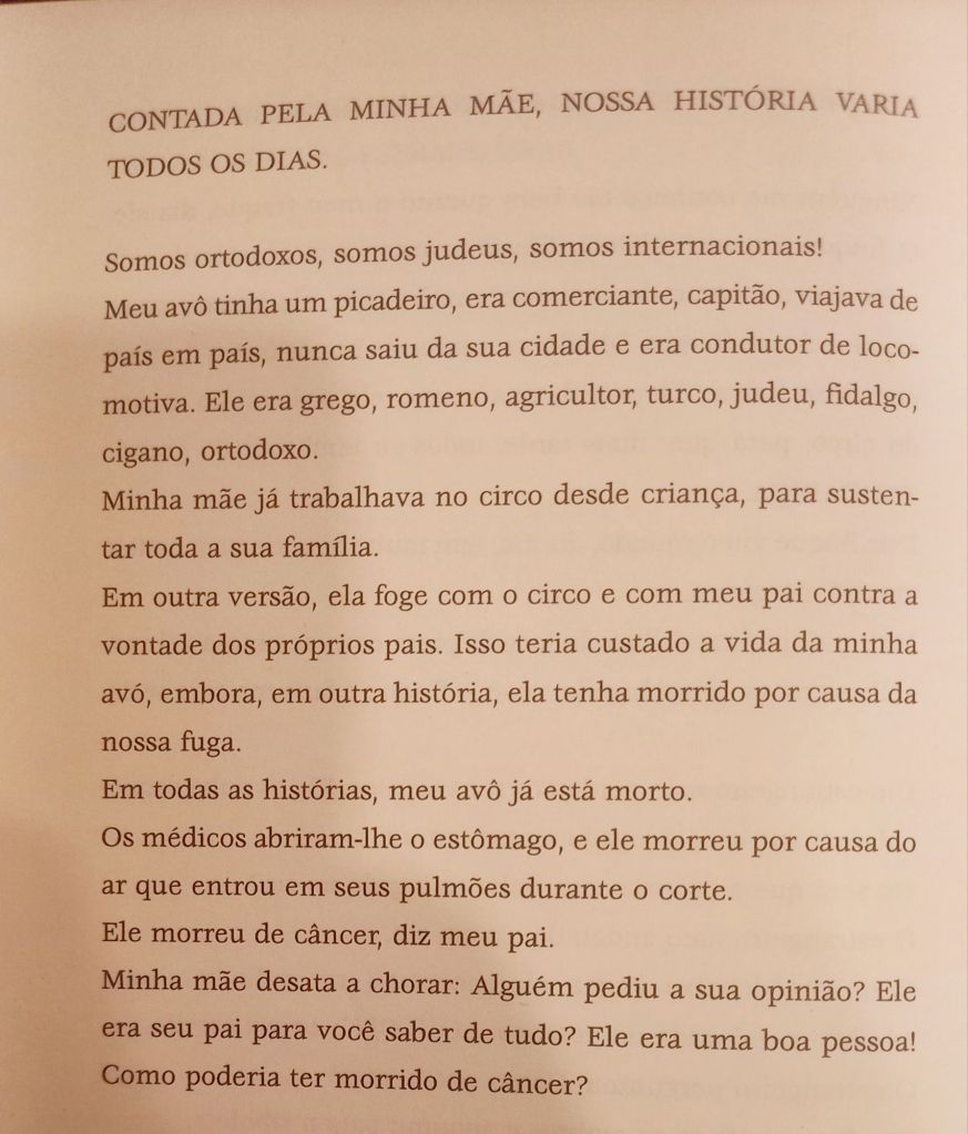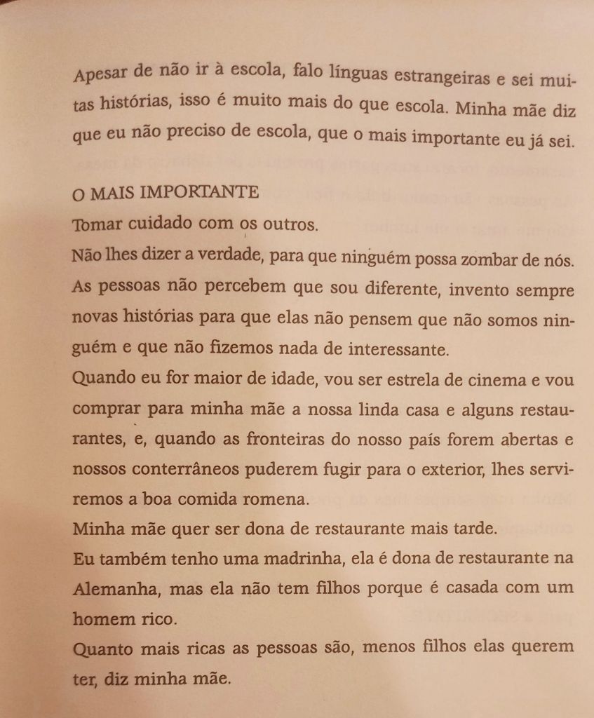 Inclusive você pode se inspirar nesta forma de narrar de Veteranyi, com frases soltas e aparentemente desconexas, até que surjam definições impactantes e improváveis.