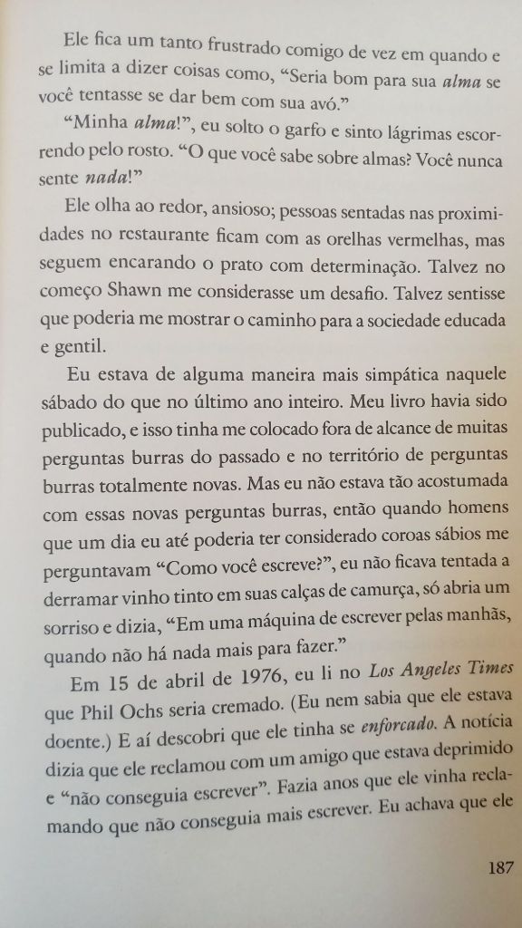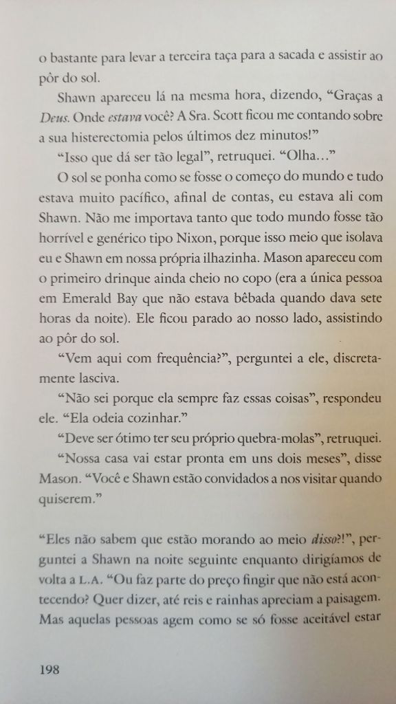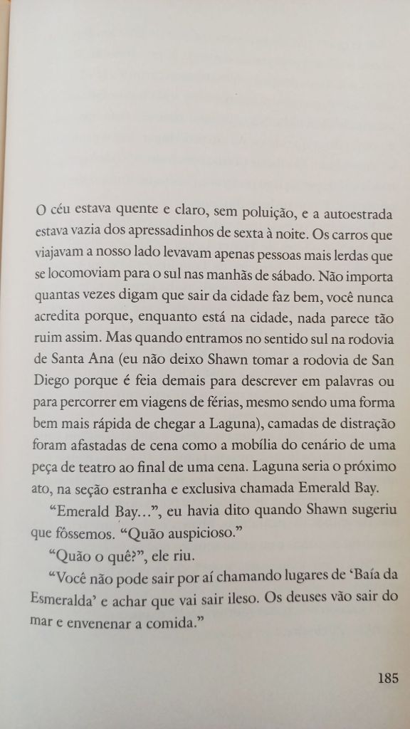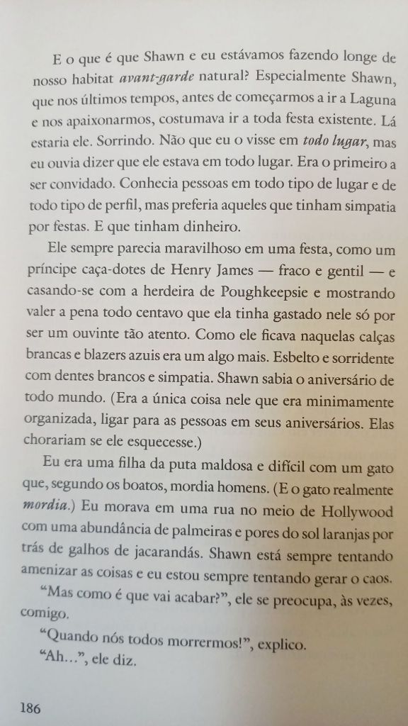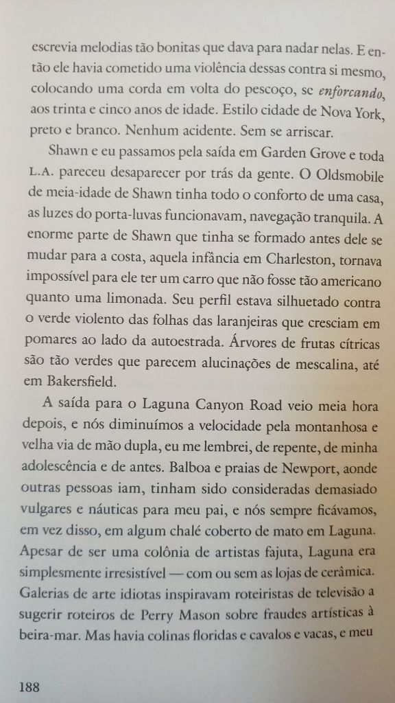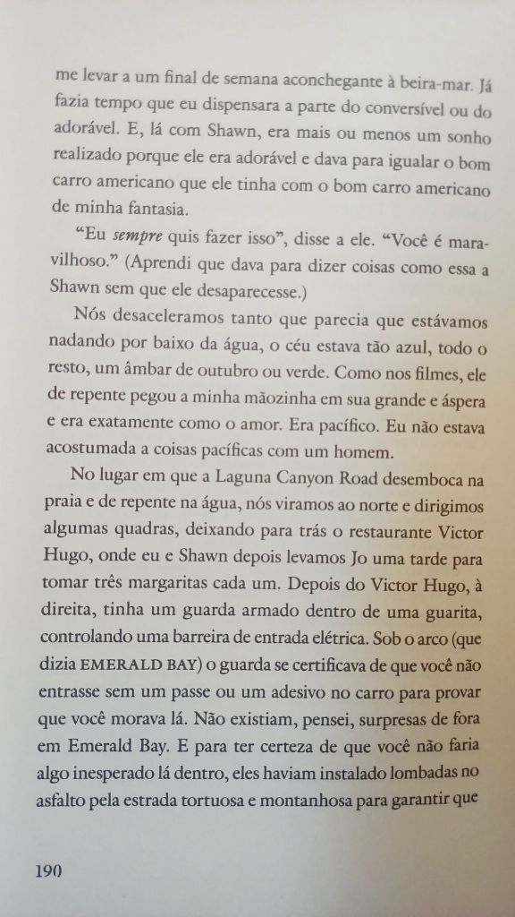 Eve Babitz está para Los Angeles como Dorothy Parker para Nova York. Se você é afilhada enteada do Igor Stravisnky, namorou Jim Morrison e jogou xadrez pelada com Marcel Duchamp, o mínimo que se espera é que tenha uma vida e um texto tão interessantes quanto os de Babitz. Pela primeira vez publicada no Brasil (tradução de Cecilia Madonna Young – sim, filha de Fernanda Young), Dias Lentos, Encontros Fugazes (Amarcord) traz uma coleção de estórias ensolaradas pelo hedonismo californiano. Nem todas terminam bem, como sugere o conto “Emerald Bay”, abaixo. Pois é – os ricos também sofrem, e até o paraíso tem seus limites.
