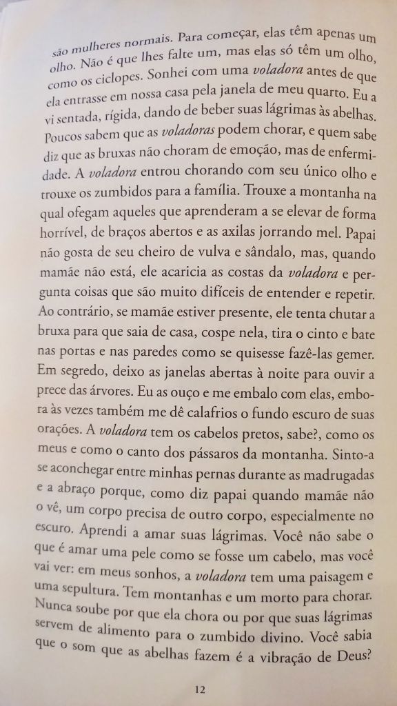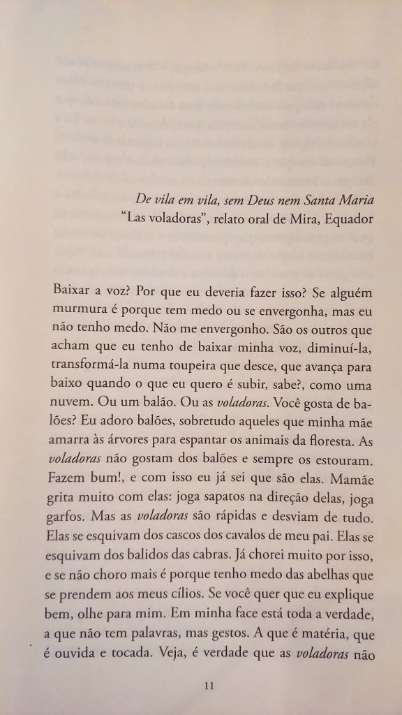 Note que em “Voladoras” desde o início está exposta a crise da passagem: “Baixar a voz? Por que eu deveria fazer isso?”. Termina com “Não tenho vergonha do tamanho dos meus quadris“.
