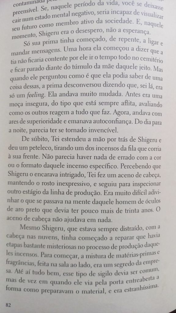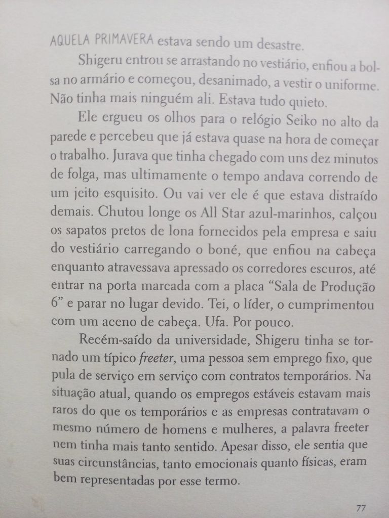 Na TV, Vale Tudo repete: a mocinha grávida foge do cafetão. Corre em círculos pela estação de trem. Letícia ri. Corro mais que ela, pensa, olhando o córrego lá embaixo. Água parada, cheia de garrafa.
