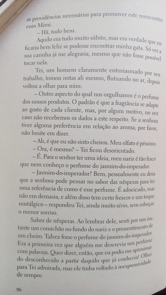 O homem pega o dinheiro com nojo. Letícia abre a bolsa de couro falsificado. Tira um cartão de visita bordado: “Letícia Silva – Designer de Unhas. Faço na sua casa.” Deixa em cima do balcão, ao lado do brigadeiro.