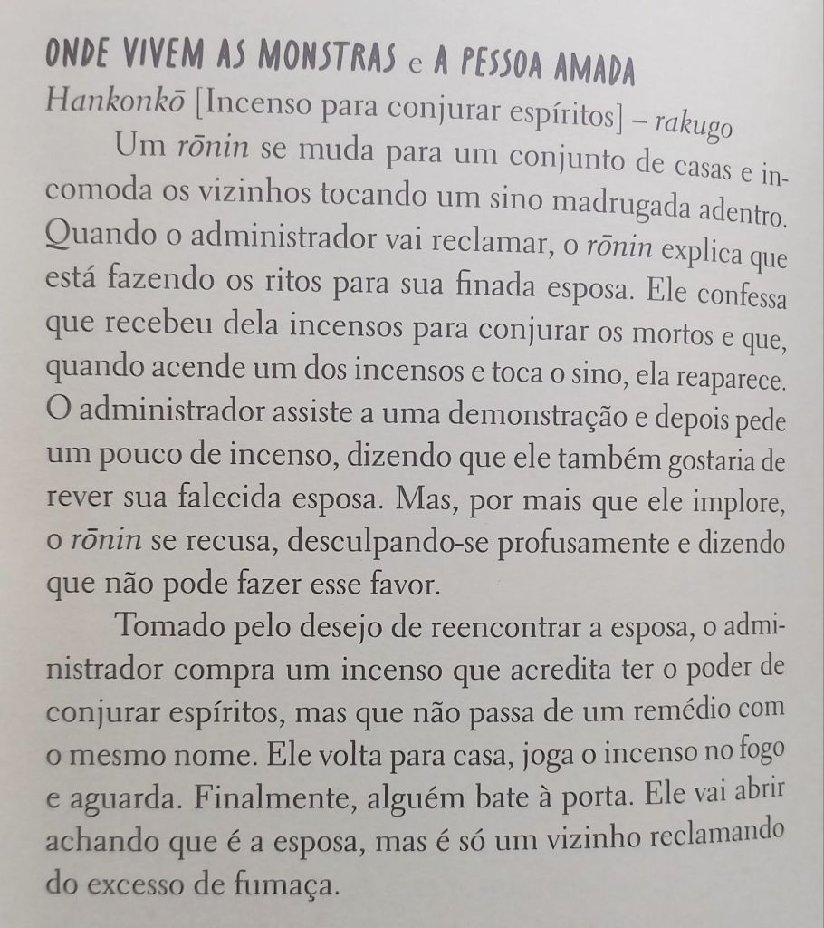 No caso, a ideia estrutural – que podemos chamar de plot, mas também de prompt – surge após uma pesquisa sobre lendas urbanas, mitologias e histórias folclóricas japonesas, tiradas do teatro kabuki ou do rakugo, uma milenar contação de histórias em que um performer usa leques ou pauzinhos para criar um miniteatro.