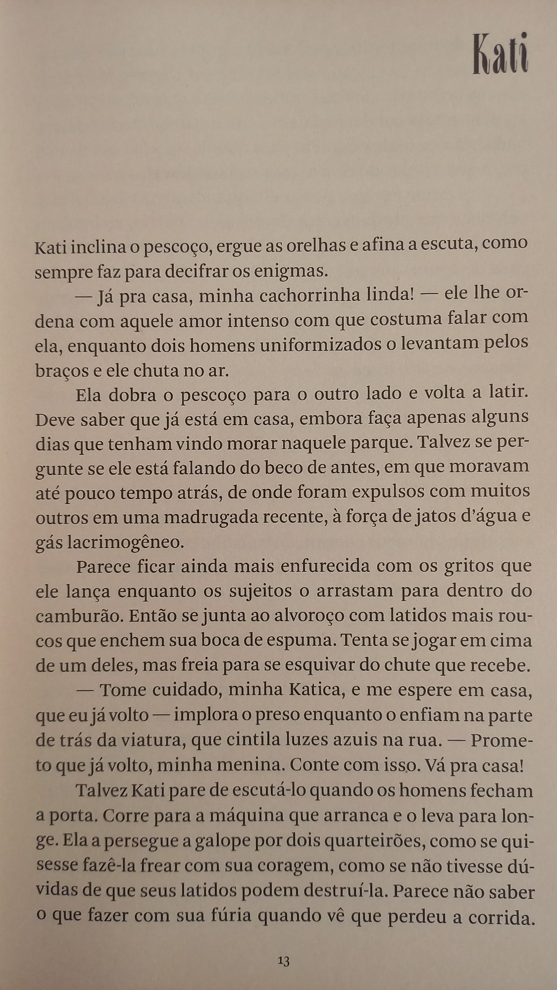 São exemplares os arcos da cachorra Kati e da saíra escarlate. À medida que Kati vai sendo arrancada de vidas que tem como suas, perde não apenas a segurança do que lhe é habitual, mas também os nomes pelos quais é chamada, ganhando novas identificações, sem, no entanto, perder-se de si mesma, de um nome que lhe é próprio, original, que lhe dá se não uma identidade, uma “cachorridade”. Se a saíra vermelha obedece à determinação ancestral e biológica de sua espécie ao se deslocar milhares de quilômetros, há também na construção da personagem uma adesão orgânica e resiliente à liberdade.
