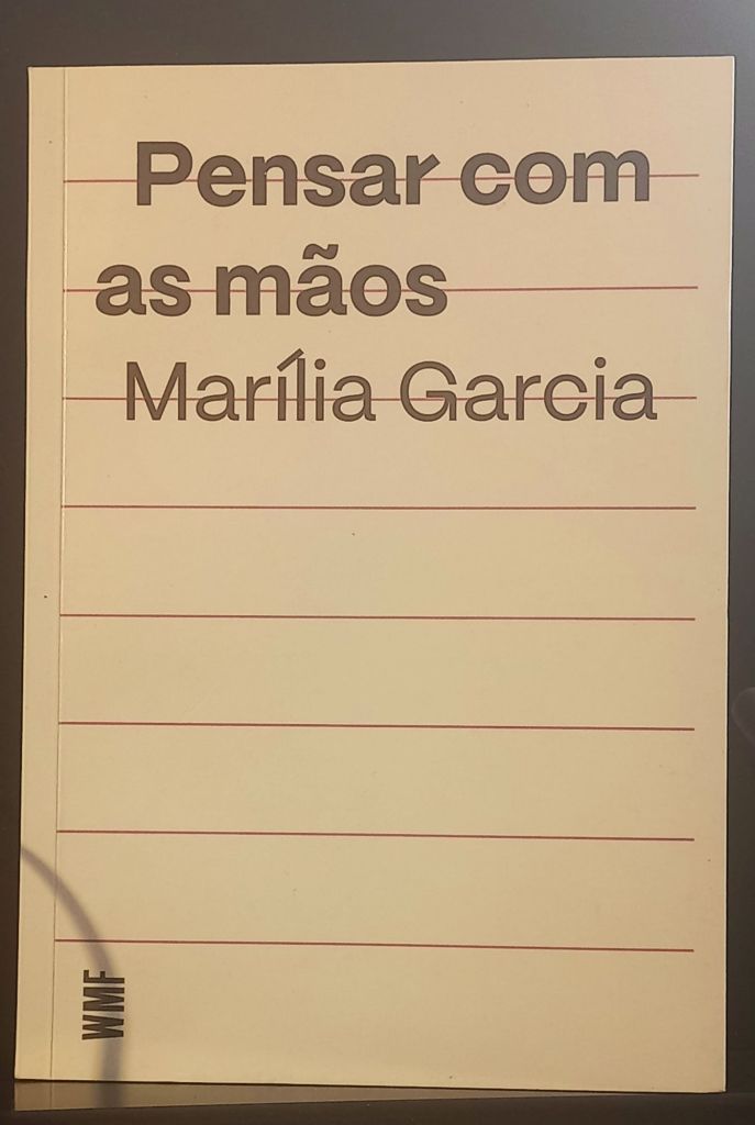 Marília Garcia, poeta, ensaísta e tradutora carioca, acaba de lançar uma antologia de seus artigos e ensaios chamado Pensar com as Mãos (WMF Martins Fontes, coleção Errar Melhor – uma série especializada em ensaios sobre a escrita; pesquise os outros títulos). Para quem conhece a poesia de Garcia, é como lê-la em um espelho, pelo avesso. Sua poesia é fundamentalmente ensaística, registra digressivamente o processo da própria criação em longos poemas de versos compridos e quase sempre livres; uma poesia sem pressa, de quem pensa longamente, pesa, estuda compara, testa um objeto e suas várias camadas imaginárias e interpretativas, buscando imagens e rimas visuais e conceituais quase como se ela estivesse flanando, se deixando surpreender, e chegando a desfechos inusitados.