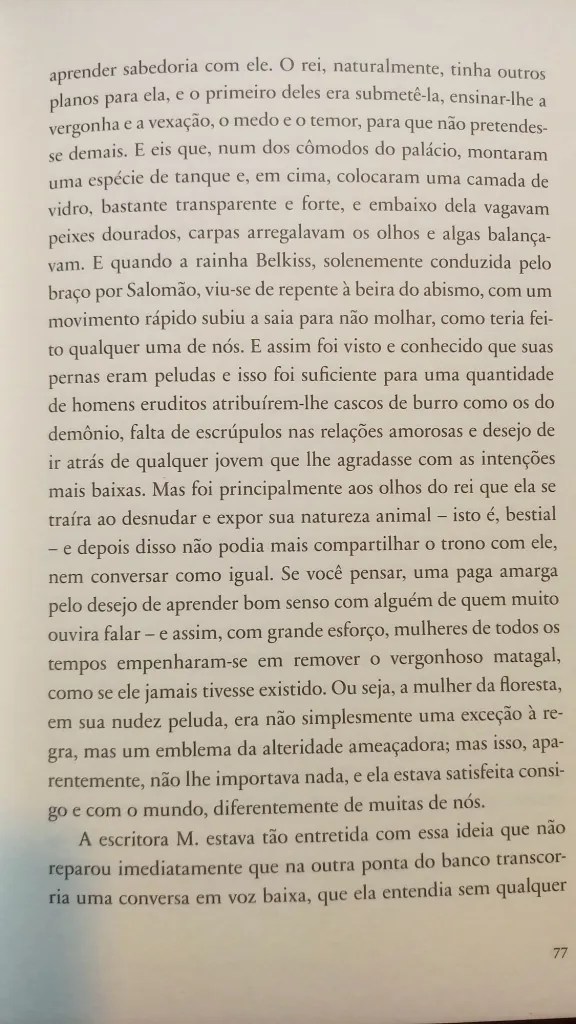 Mesmo que menos reflexivo e ensaístico do que Em Memória da Memória – neste, ela prefere investigar as possibilidades do futuro às encrencas do passado -, e mais calcado na narrativa pura, este intrigante livrinho nos convida a refletir sobre o desejo de desaparecer, física e emocionalmente, como forma de escapar das amarras do passado e da realidade opressiva.