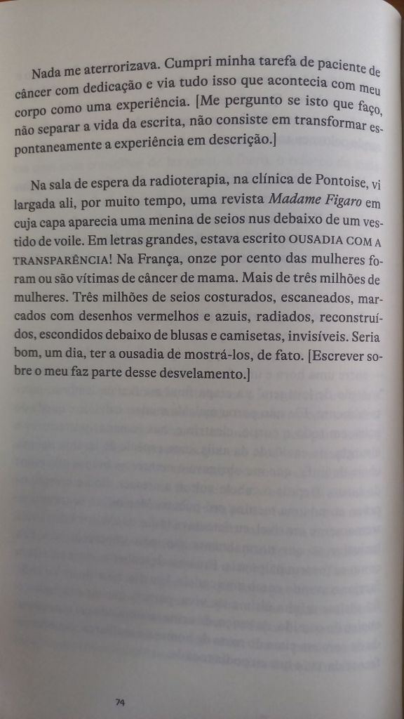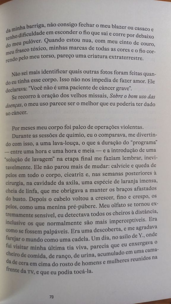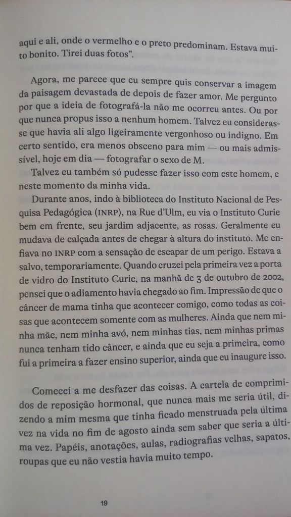 Em O Uso da Foto (trad. Mariana Delfini, Fósforo), Annie Ernaux desdobra seu projeto de autoficção em mais uma direção surpreendente. Sempre partindo de si em direção ao Outro, aqui ela escreve em parceria com o fotógrafo Marc Marie. O projeto tem uma curiosa relação com a morte. À época em que se conheceram, 2003, Marie havia acabado de se separar e Ernaux tinha acabado de descobrir que estava com câncer na mama. Portanto a compleição física da escritora havia sido transformada de modo radical – além da perda de peso e da marca do cateter, por conta da quimio, havia perdido todos os pêlos do corpo.