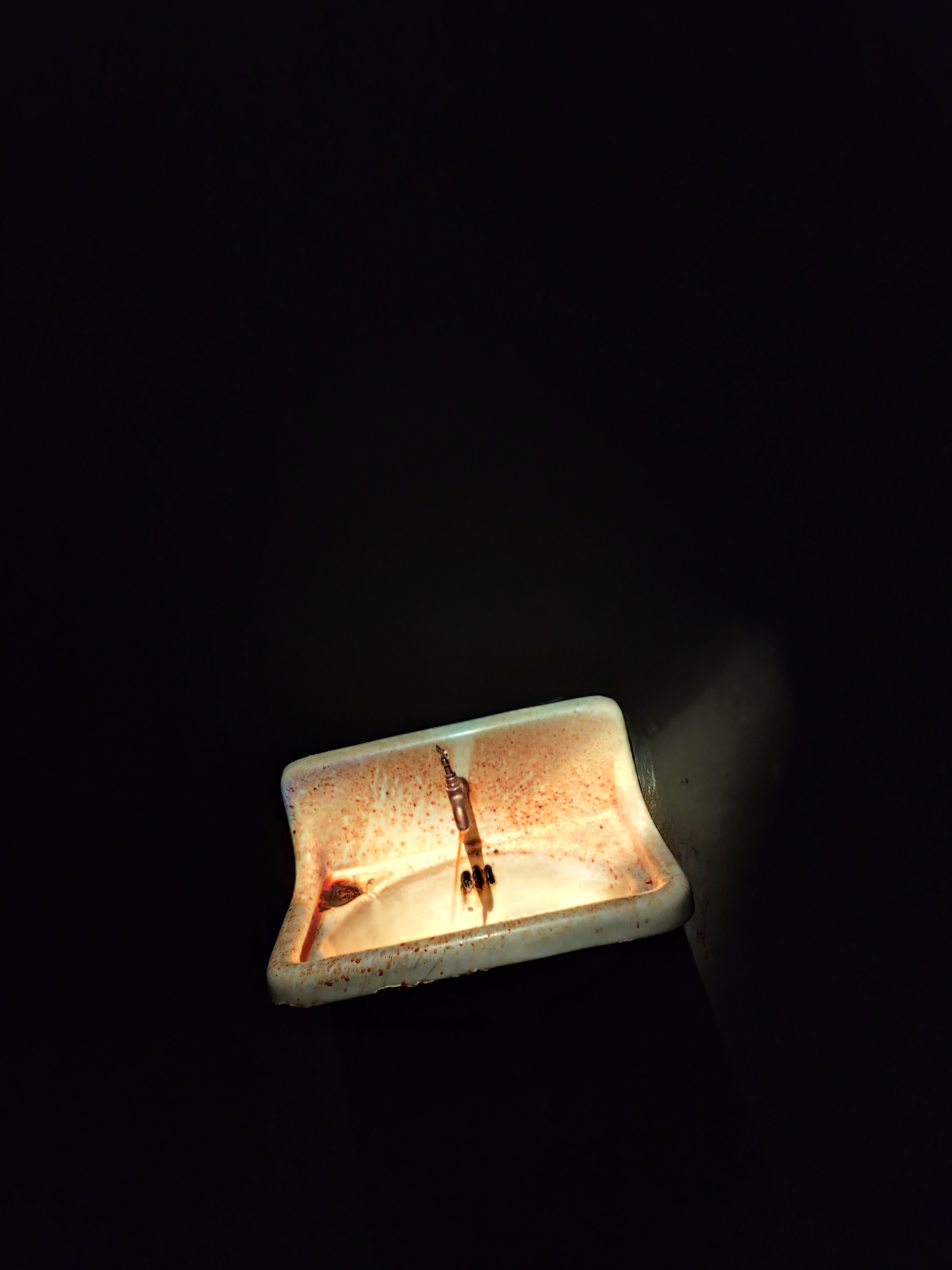 Ouço agora os choques abafados dentro do cigarro que a mulher fuma, os lamentos estridentes ante a combustão. A sombra ergue o tronco e caminha para o meu lado da cama, o rosto sem feição carregado pelo corpo esguio de Ana. Agacha muito próxima do meu ouvido e diz: “abro a porta de um quarto vazio, e de repente me esqueço.” A voz é límpida. Os gestos são econômicos. Ouço um barulho de torneira aberta. Levanto da cama e sigo Ana até o banheiro, deixando meu corpo na cama, paralisado pelo ar viscoso que toma o quarto, a mulher do seu lado com os lábios pregados no seu pescoço. Sinto que seu corpo tenta sair do poço movediço que a esfera inaugurou. Vejo Ana abrir a porta do banheiro, estou no rastro da sua sombra, e vejo a mulher na cama delineando minhas vértebras com os dedos até chegar dentro da calça. Enquanto entro no banheiro escuro com Ana, a mulher aperta e estrangula meu pau. Fodem, ela e meu corpo, e vão fazê-lo mais algumas vezes durante a noite, saindo do torpor para o êxtase e retornando à inércia e à medida que alternam os estados do corpo o gozo diminui e então se esvai. Fecho a porta do banheiro, acendo a luz e a sombra de Ana se dissipa e então vejo as centenas de gotas vermelhas cobrindo a pia, que está envergada, como se algo a tivesse deslocado. Tento fechar a torneira, mas alguém apaga a luz.