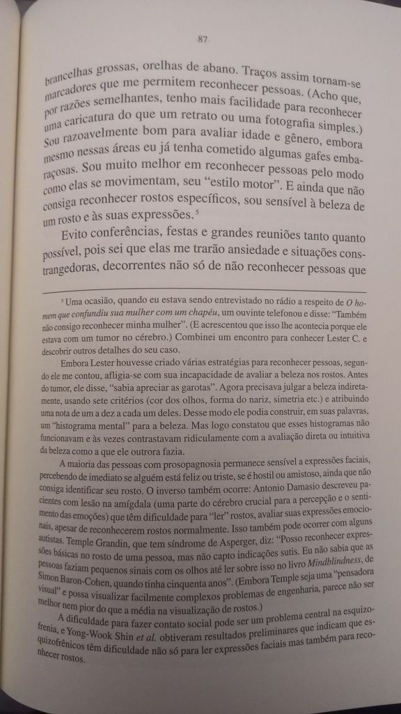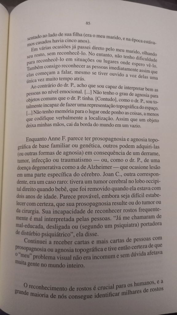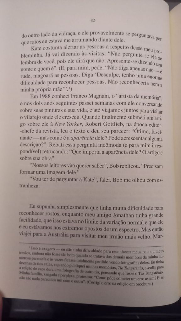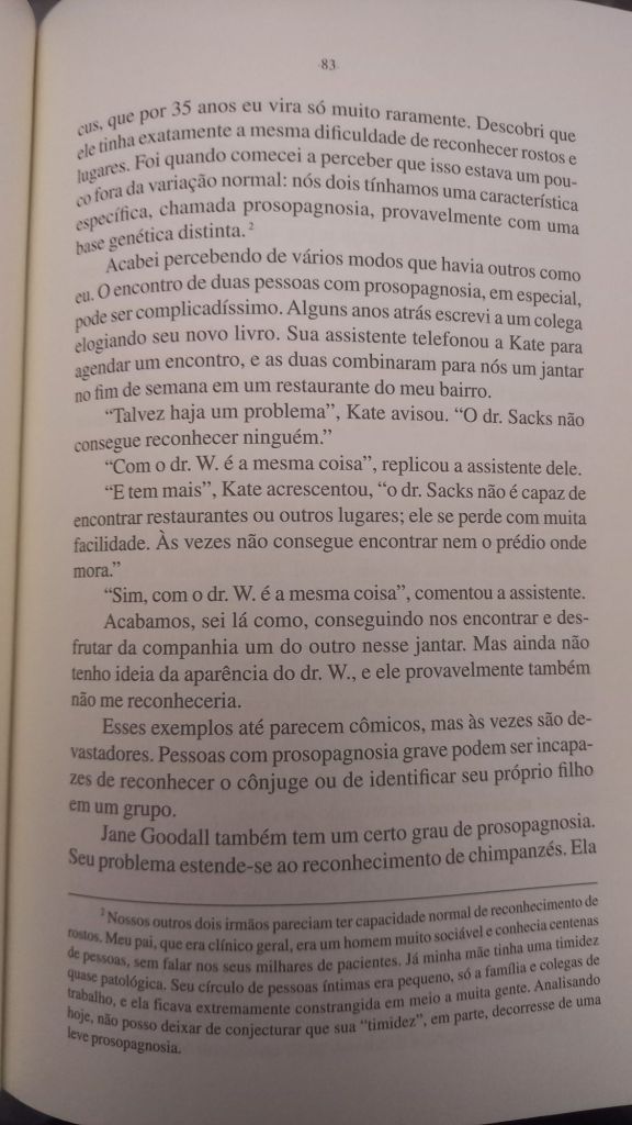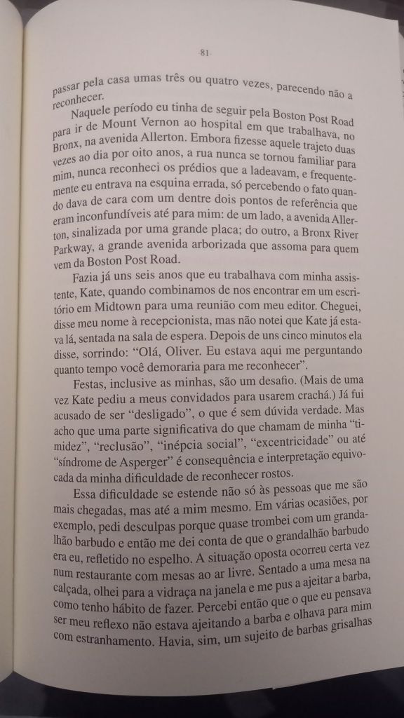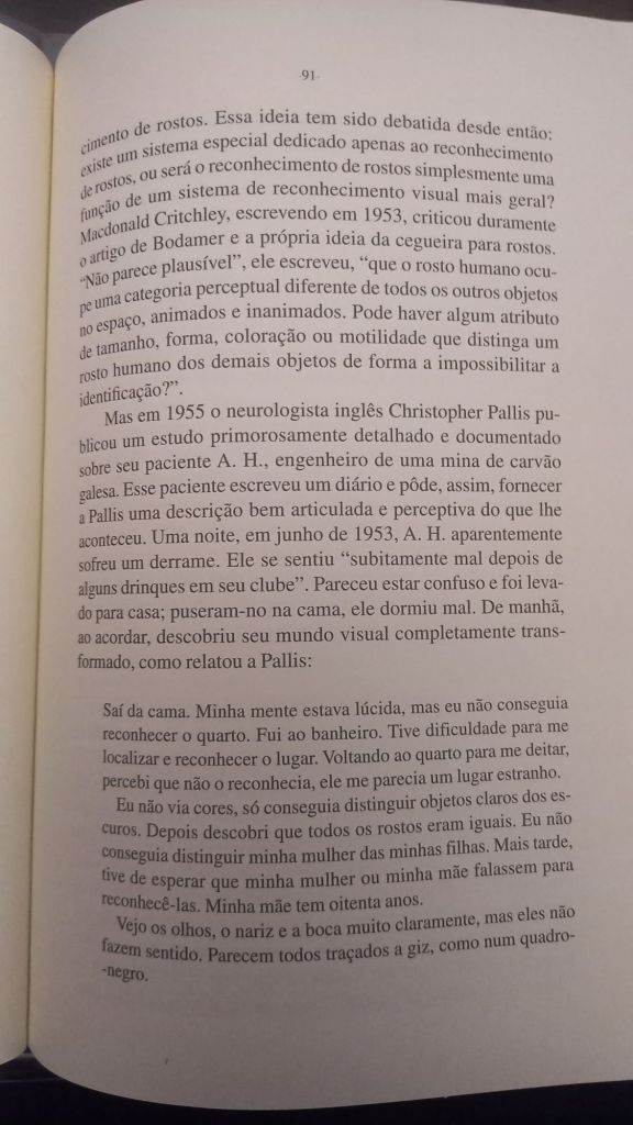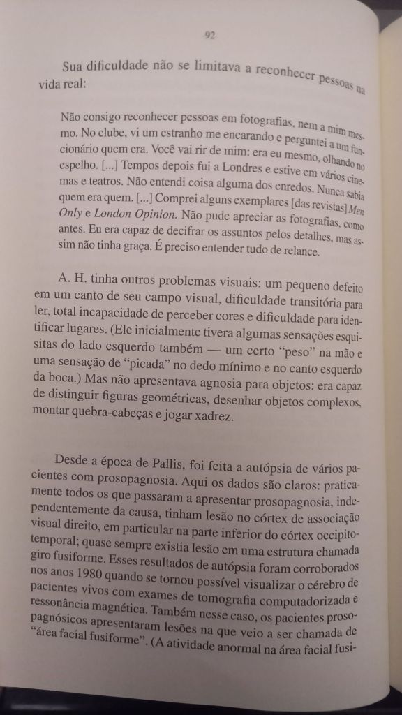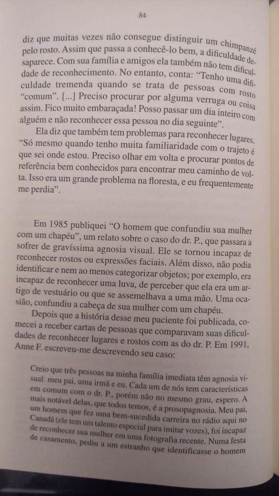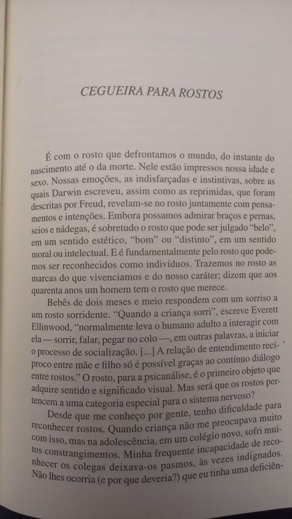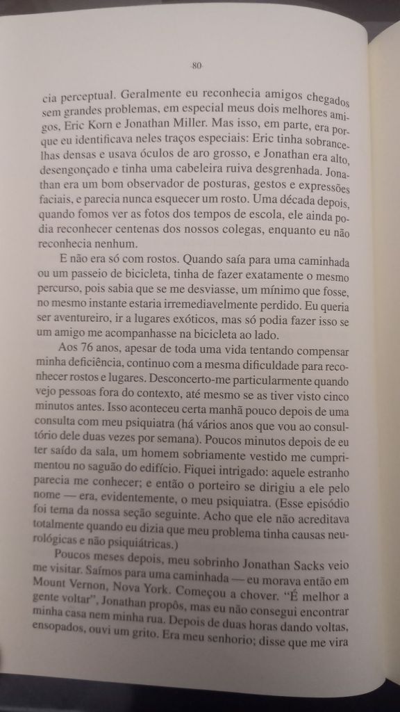 Em O Olhar da Mente (Cia das Letras) ele foca em histórias de pacientes cuja percepção visual moldava sua vida: uma pianista que não consegue mais identificar objetos, um escritor que perde a capacidade de compreender letras e frases, indivíduos que só veem imagens em duas dimensões e outros que não reconhecem rostos. Como o próprio Sacks, que além de sofrer de prosopagnosia – característica marcante no protagonista de Barba Ensopada de Sangue, de Daniel Galera – , acaba por desenvolver um câncer no próprio olho.